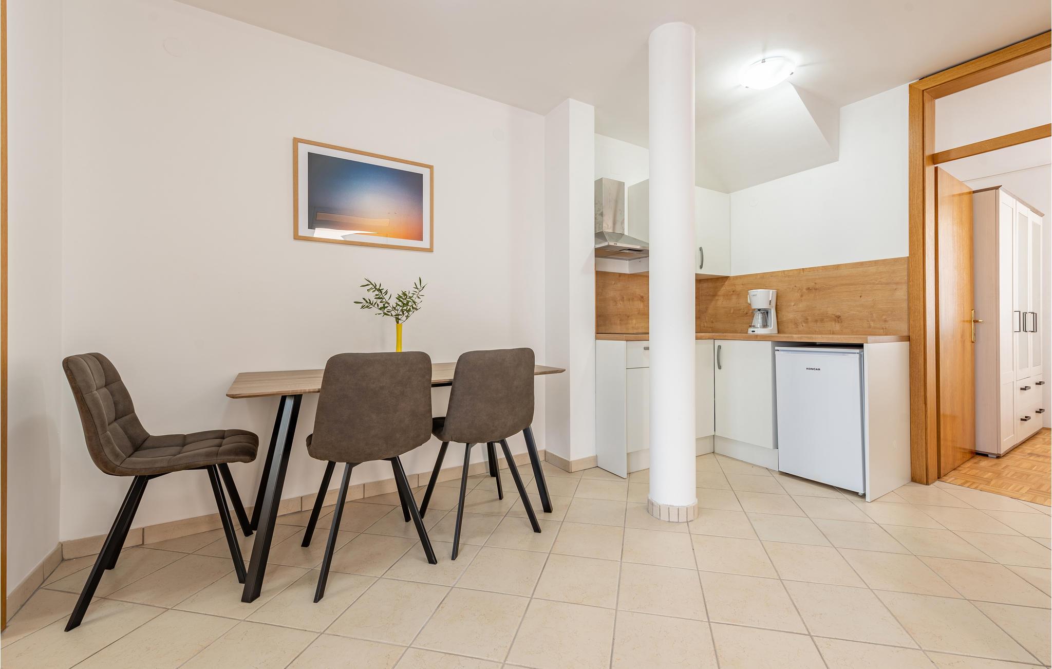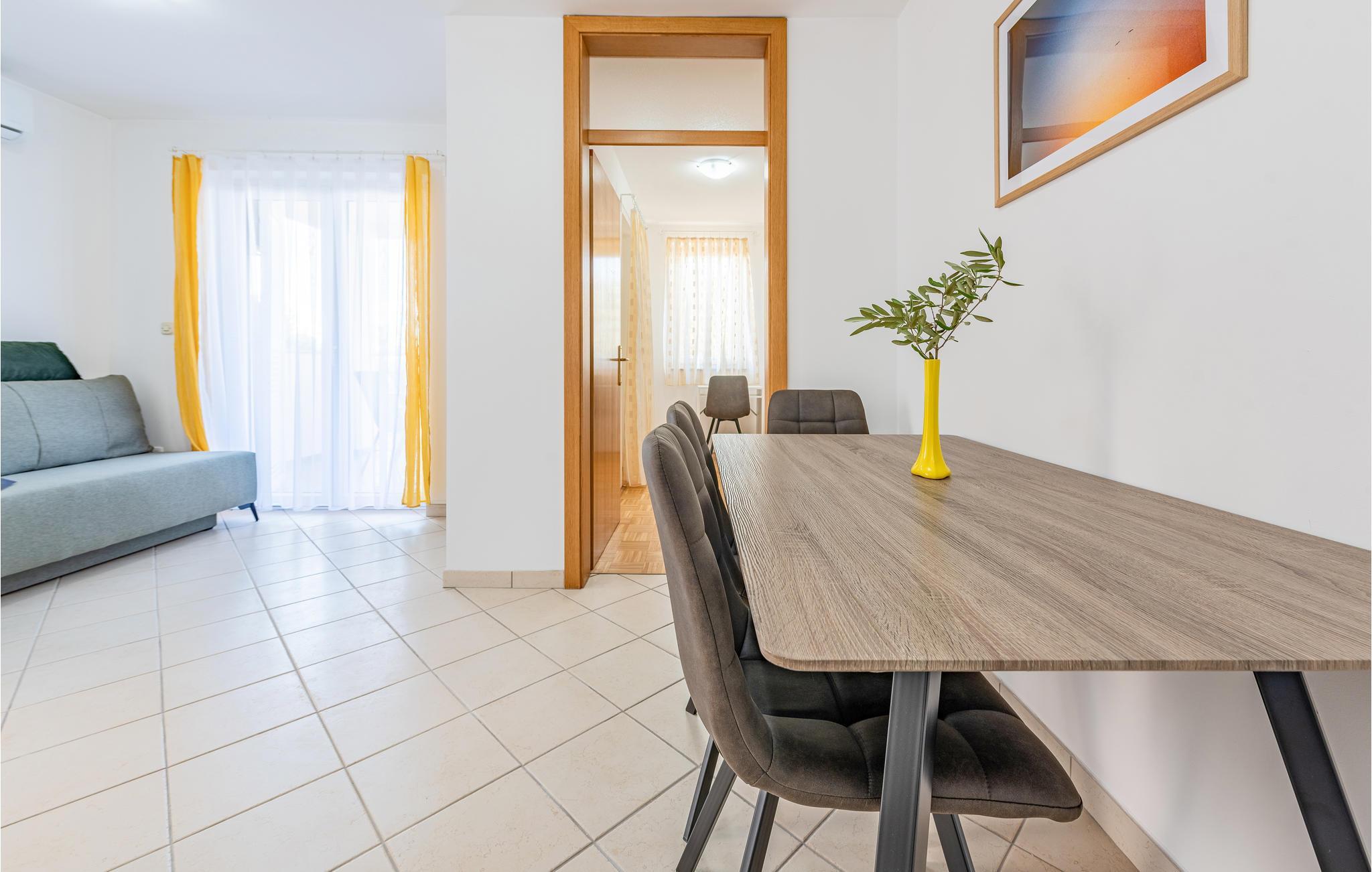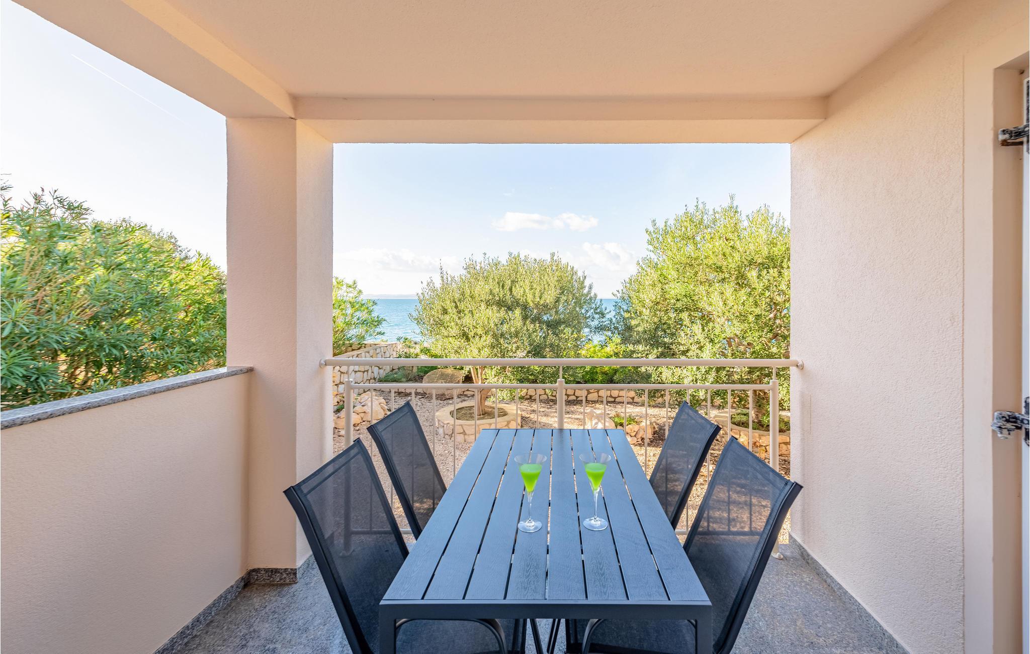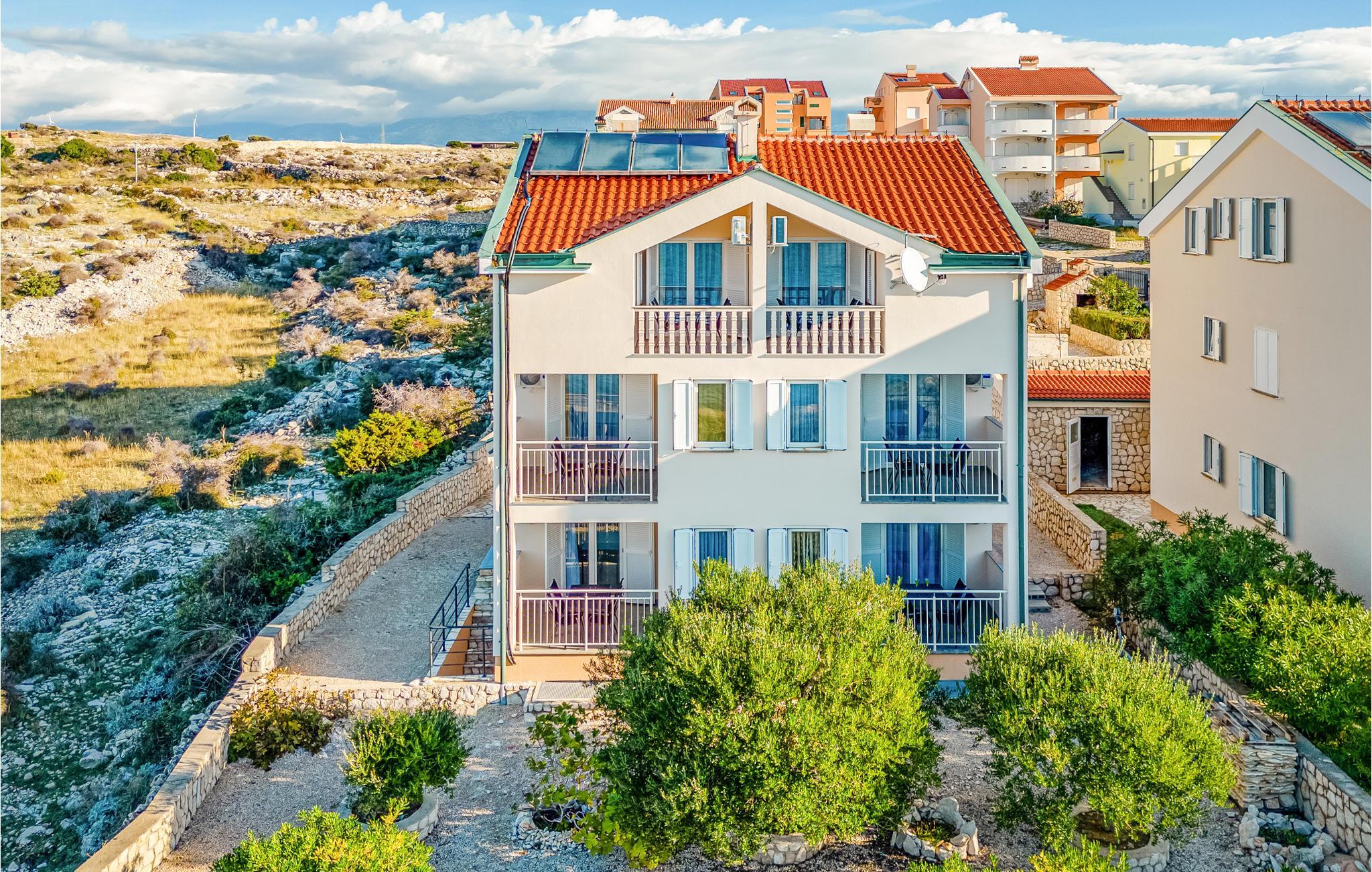 Denne skønne ferielejlighed er placeret i en moderne etageejendom. Her rykker I ind i en bolig, som emmer af stilfuld minimalisme og giver jer optimale rammer til at slappe af efter jeres ture rundt på øen Pag. I kan tilbringe aftenerne på den skyggefulde balkon og se de smukke solnedgange over havet. Her er der alt det, I skal bruge for at slappe af og have det rart, og I har desuden adgang til et fælles, lukket lokale, som I deler med husets øvrige gæster til socialt samvær og grillaftener.