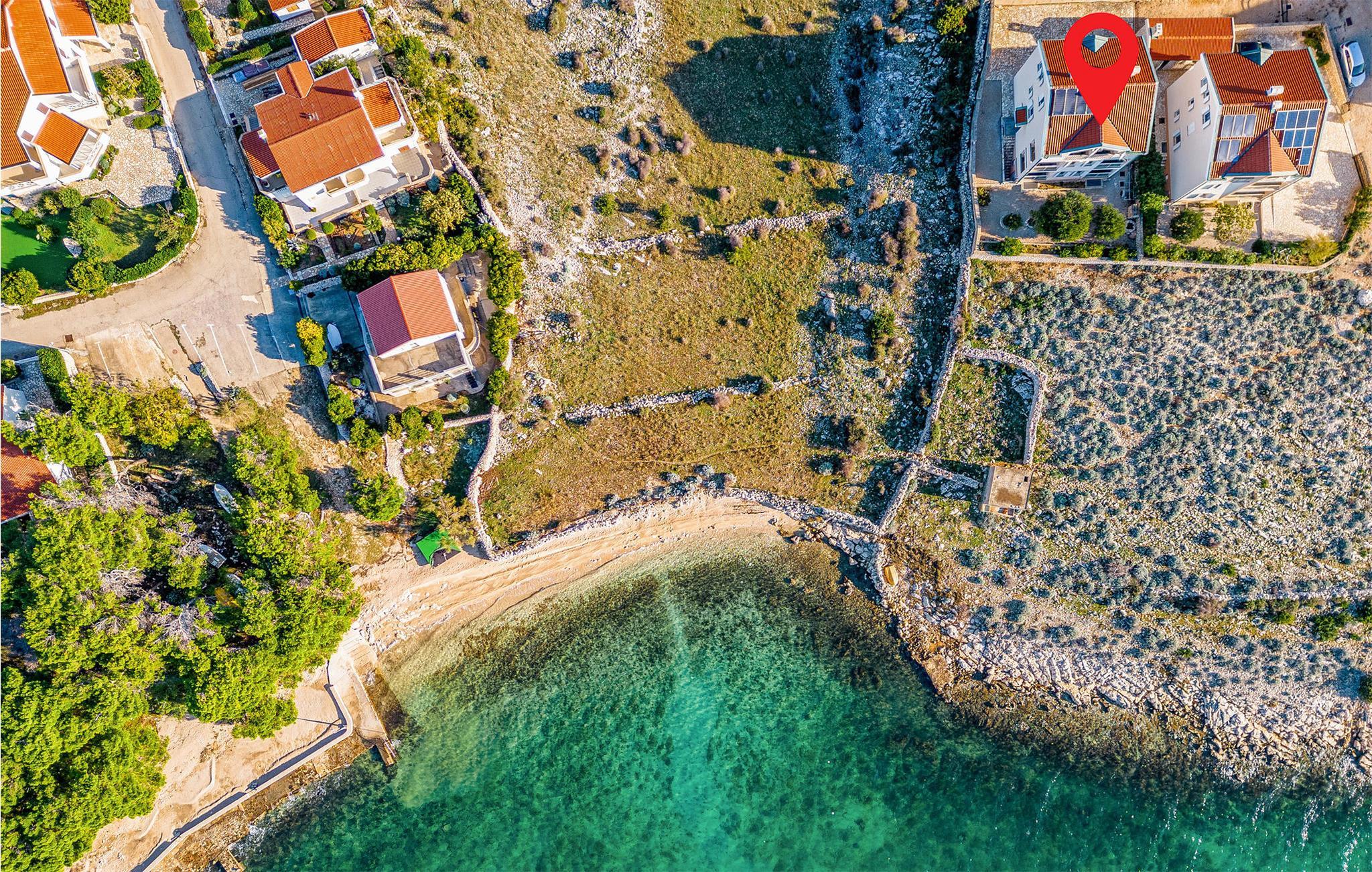Gå den lille tur ned ad grusstien, som fortsætter over i en lille passage til den nærliggende vilde strand og stenstranden. Snup en dukkert i det krystalklare hav, tag ud for at snorkle langs klipperne og solbad på stranden. I kan også tage ud på en sejltur og se smukke Pag fra vandsiden. Området er optimalt til dem, der ønsker et stort gastronomisk udvalg og gerne vil ud til de afsides strande, små vige og tusind år gamle oliventræer.
