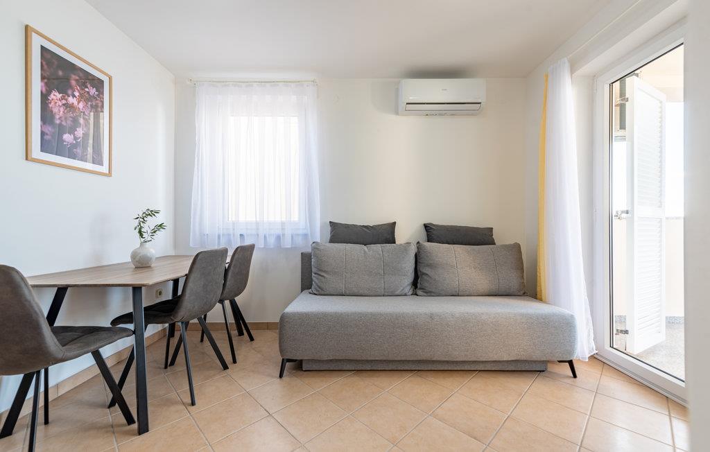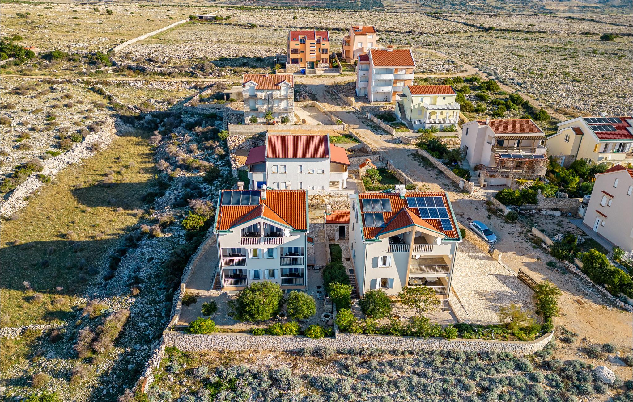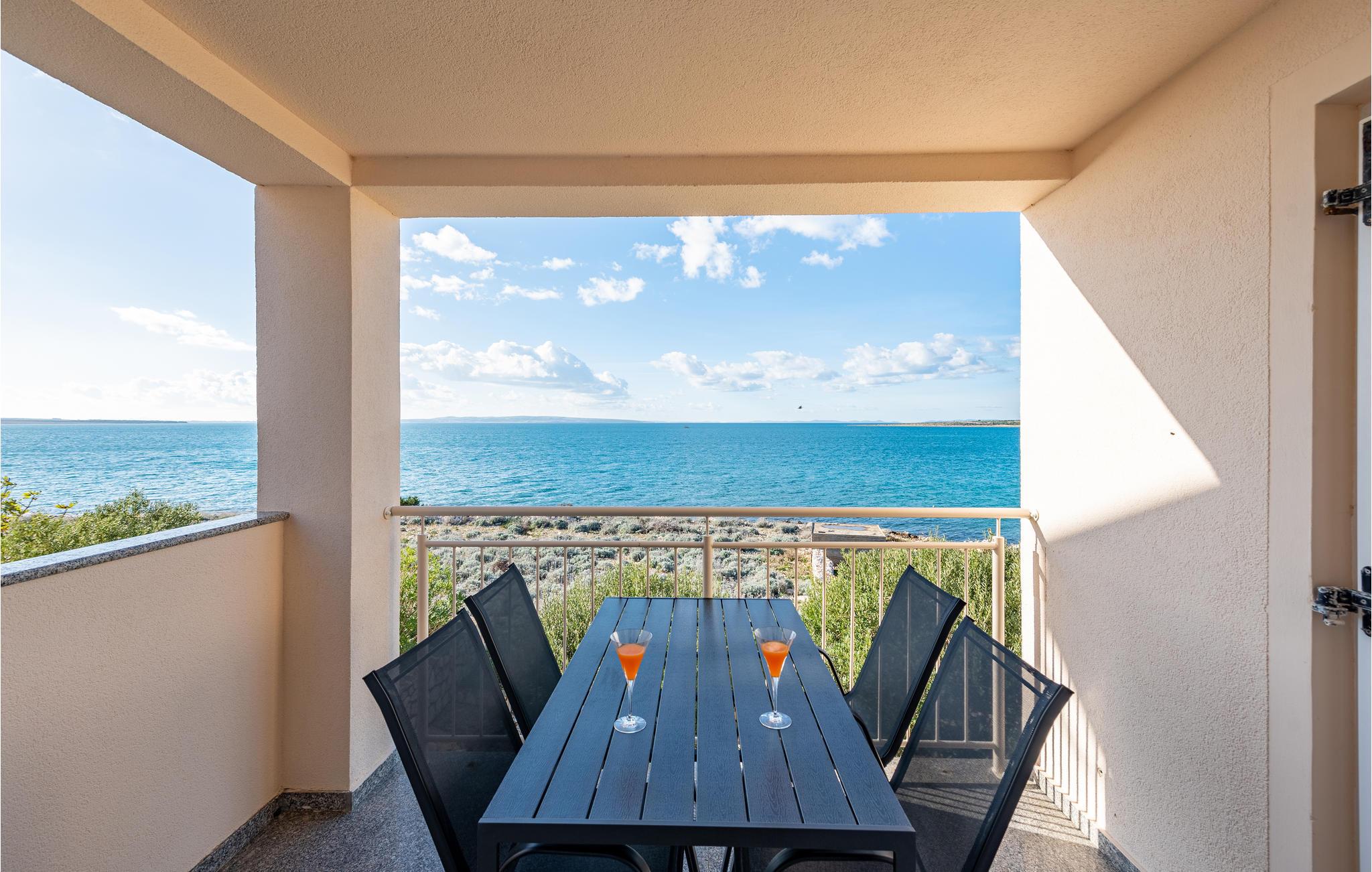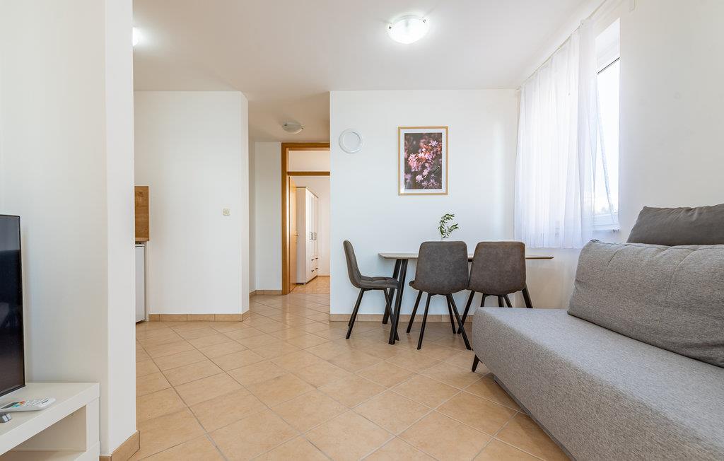 Denne skønne ferielejlighed er placeret i en moderne etageejendom. Her rykker I ind i en bolig, som emmer af stilfuld minimalisme og giver jer optimale rammer til at slappe af efter jeres ture rundt på øen Pag. I kan tilbringe aftenerne på den skyggefulde balkon og se de smukke solnedgange over havet. Her er der alt det, I skal bruge for at slappe af og have det rart, og I har desuden adgang til et fælles, lukket lokale, som I deler med husets øvrige gæster til socialt samvær og grillaftener.