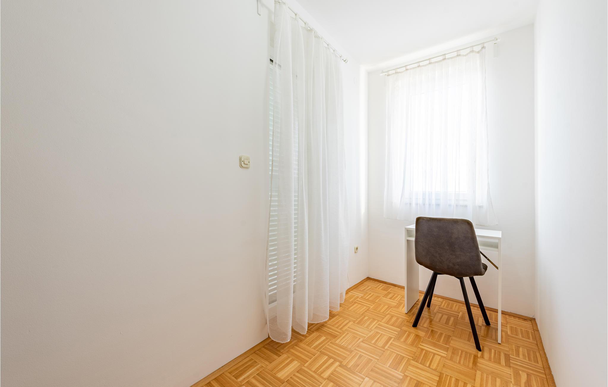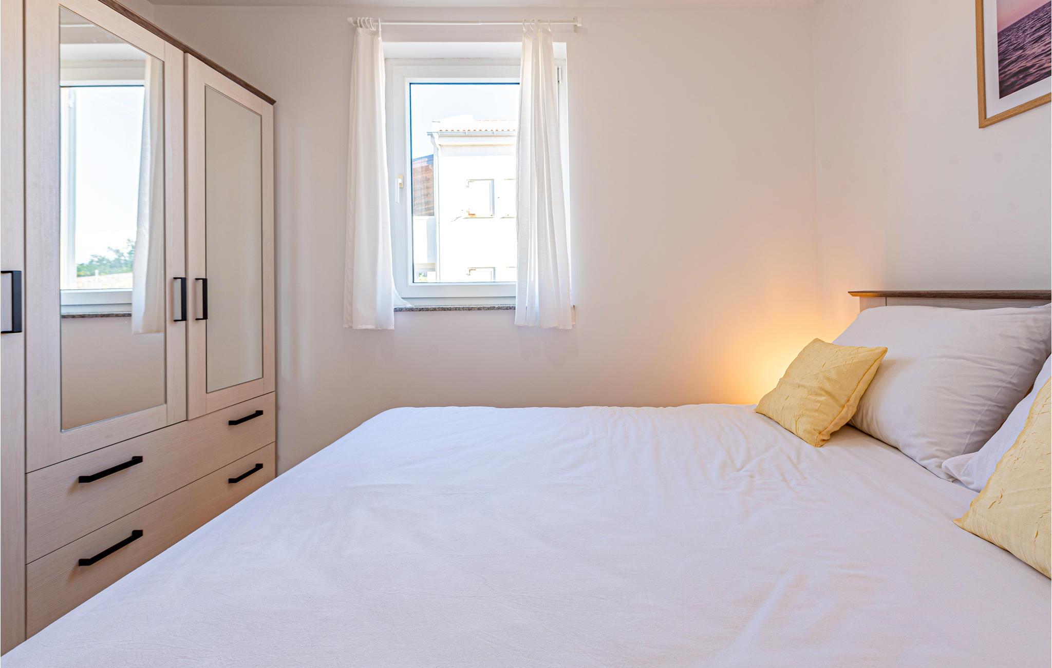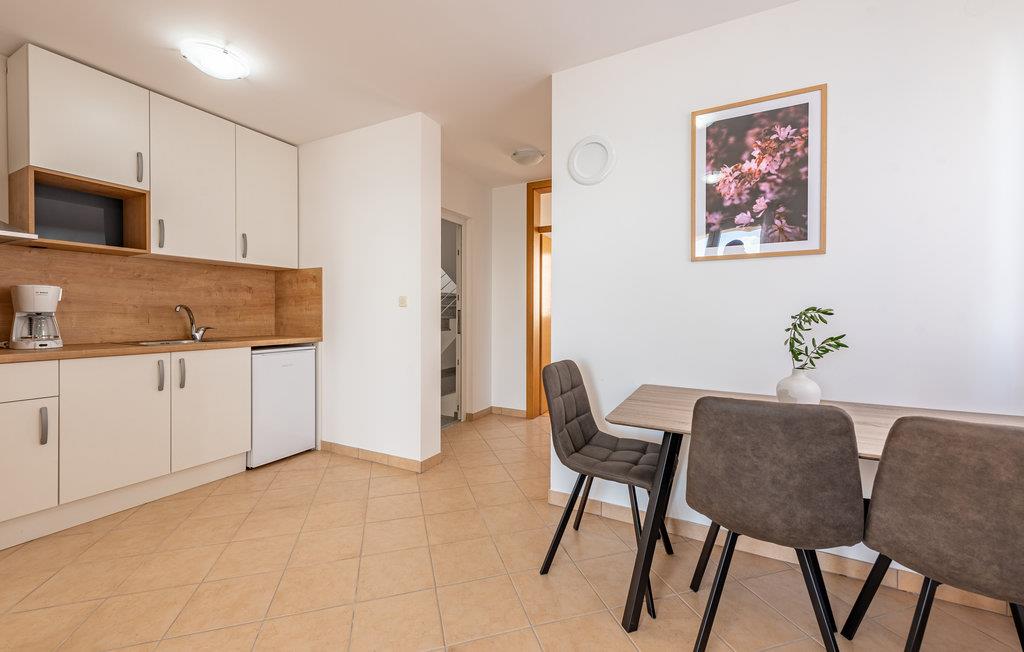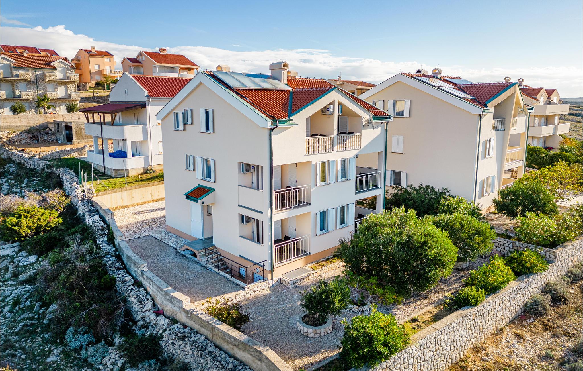 Denne skønne ferielejlighed er placeret i en moderne etageejendom. Her rykker I ind i en bolig, som emmer af stilfuld minimalisme og giver jer optimale rammer til at slappe af efter jeres ture rundt på øen Pag. I kan tilbringe aftenerne på den skyggefulde balkon og se de smukke solnedgange over havet. Her er der alt det, I skal bruge for at slappe af og have det rart, og I har desuden adgang til et fælles, lukket lokale, som I deler med husets øvrige gæster til socialt samvær og grillaftener.