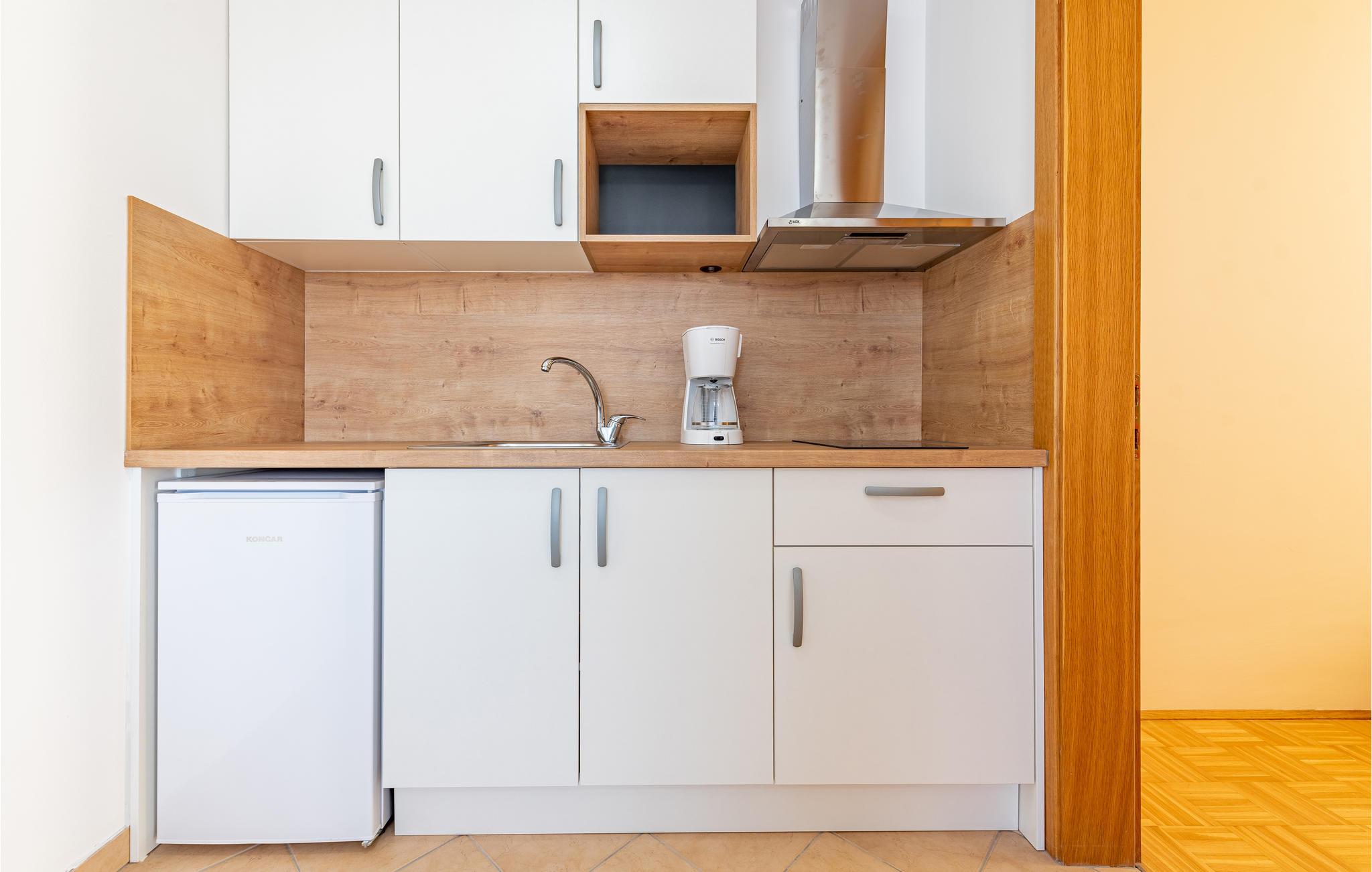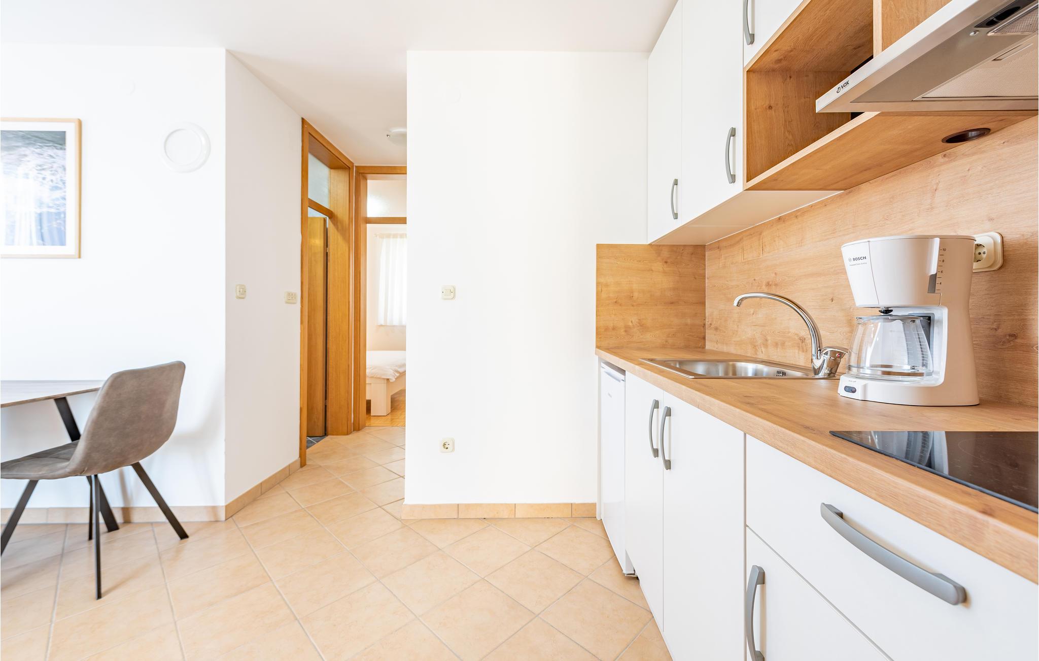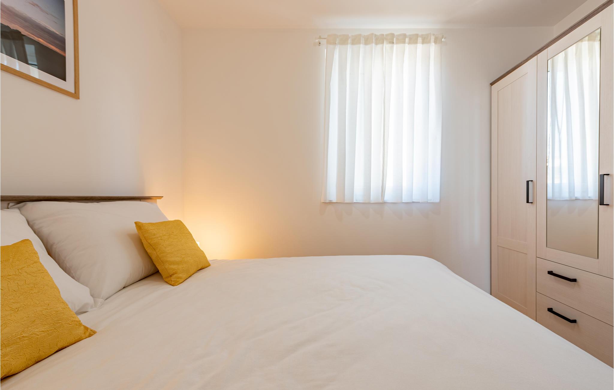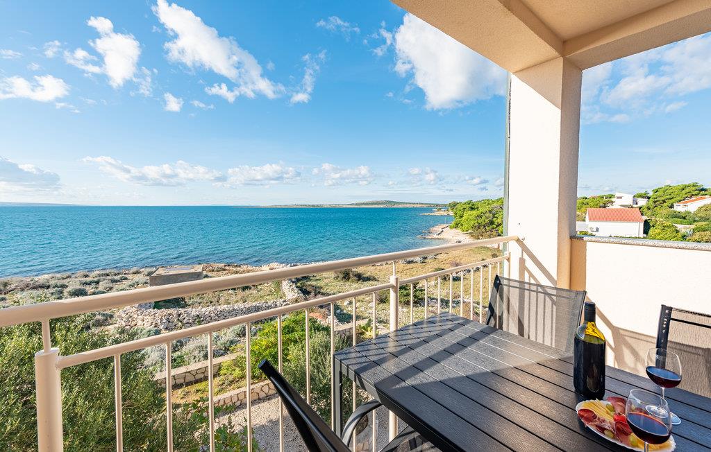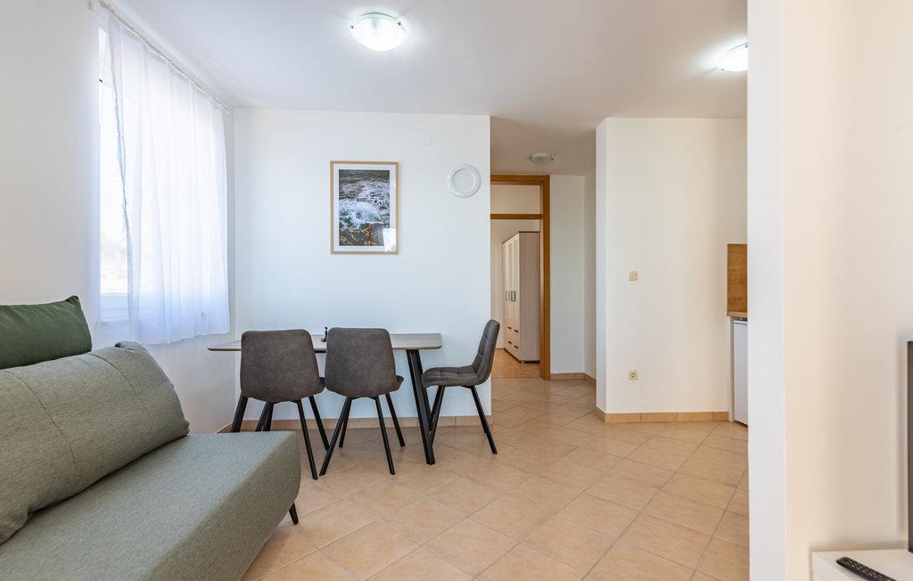 Denne skønne ferielejlighed er placeret i en moderne etageejendom. Her rykker I ind i en bolig, som emmer af stilfuld minimalisme og giver jer optimale rammer til at slappe af efter jeres ture rundt på øen Pag. I kan tilbringe aftenerne på den skyggefulde balkon og se de smukke solnedgange over havet. Her er der alt det, I skal bruge for at slappe af og have det rart, og I har desuden adgang til et fælles, lukket lokale, som I deler med husets øvrige gæster til socialt samvær og grillaftener.