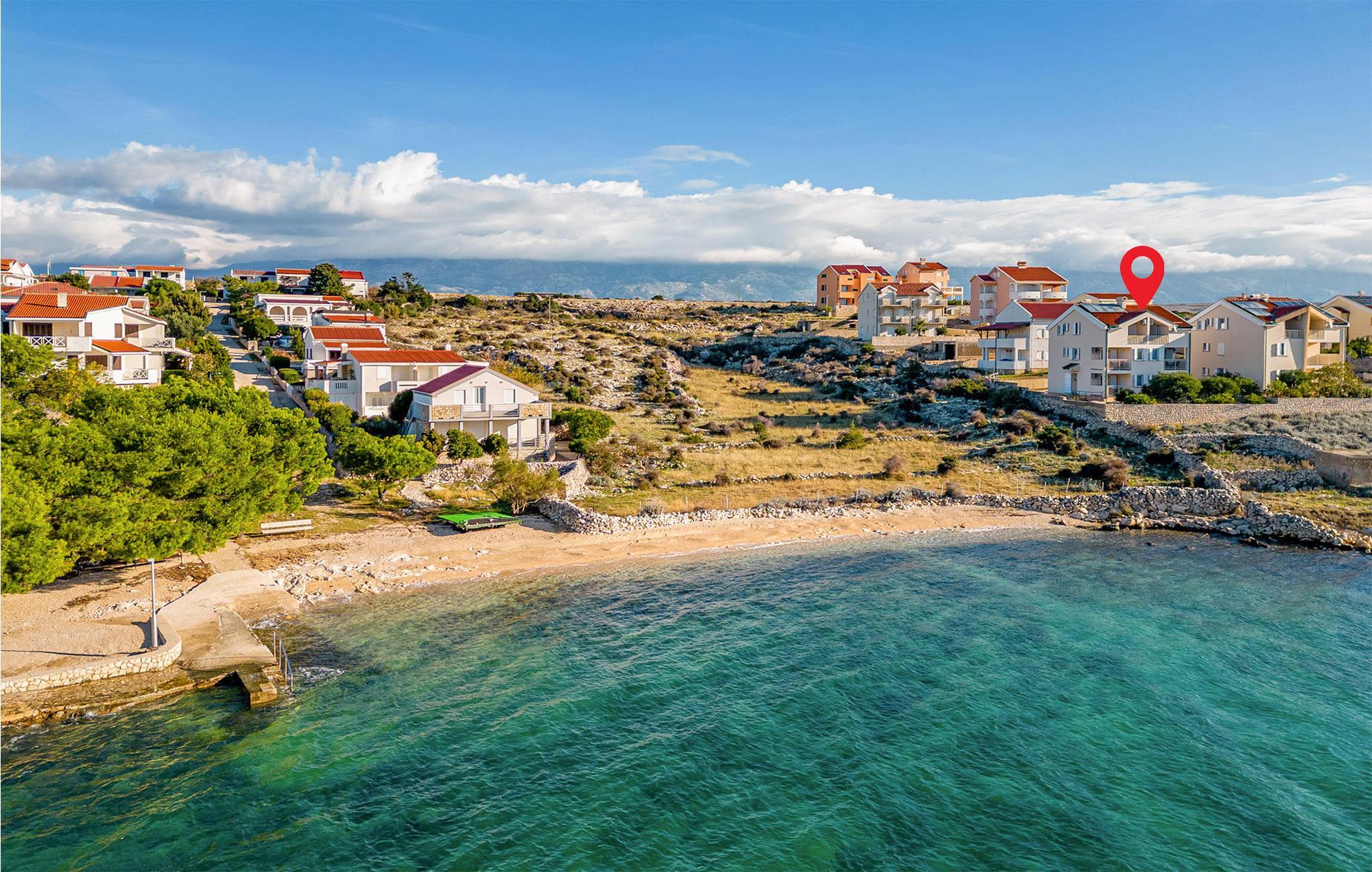 Gå den lille tur ned ad grusstien, som fortsætter over i en lille passage til den nærliggende vilde strand og stenstranden. Snup en dukkert i det krystalklare hav, tag ud for at snorkle langs klipperne og solbad på stranden. I kan også tage ud på en sejltur og se smukke Pag fra vandsiden. Området er optimalt til dem, der ønsker et stort gastronomisk udvalg og gerne vil ud til de afsides strande, små vige og tusind år gamle oliventræer.