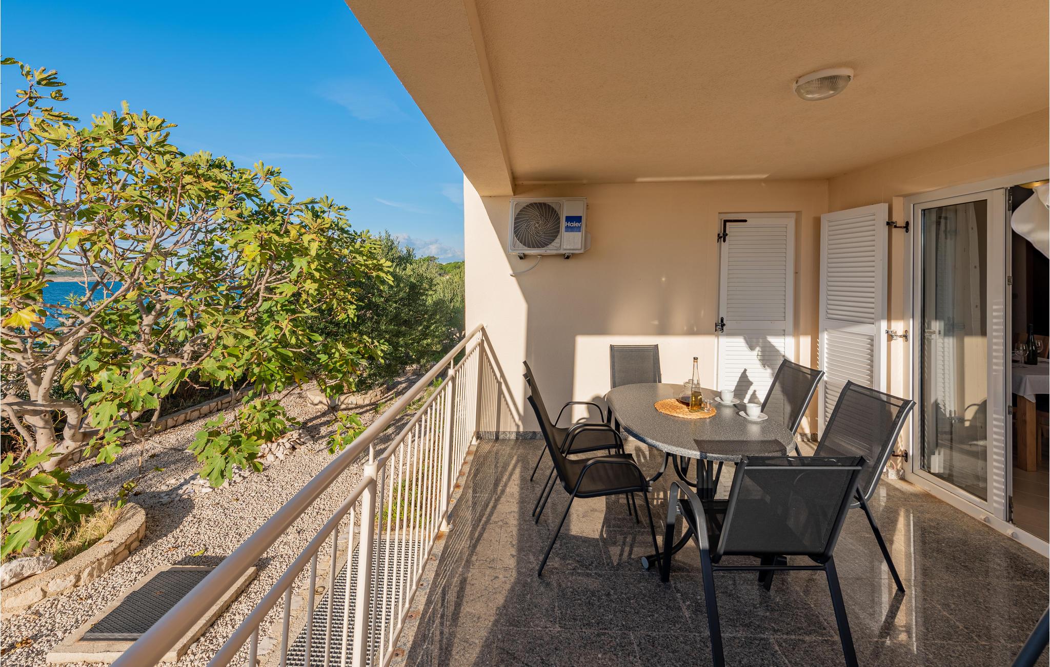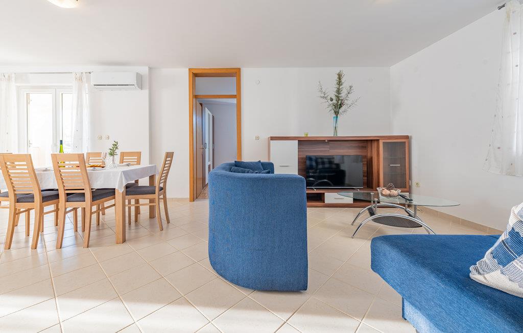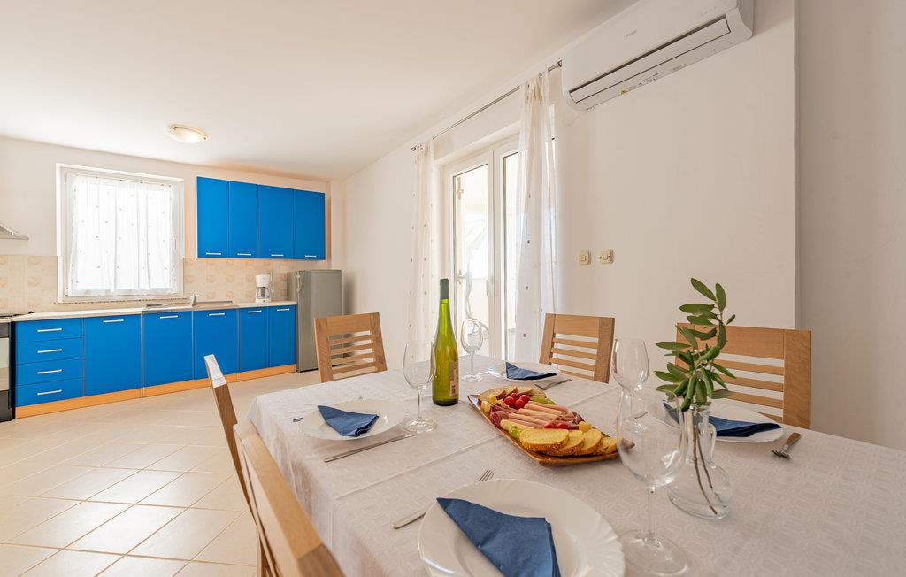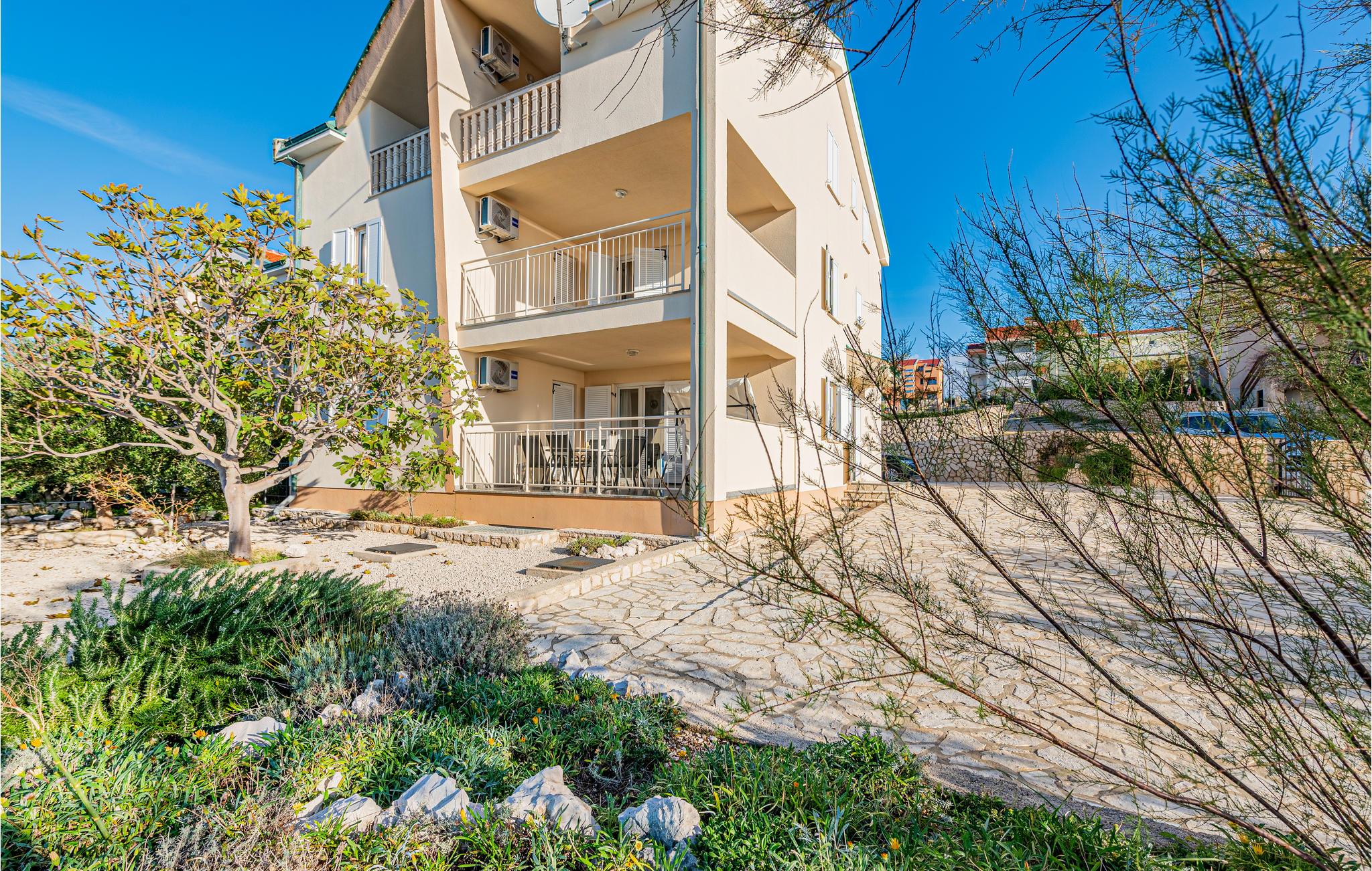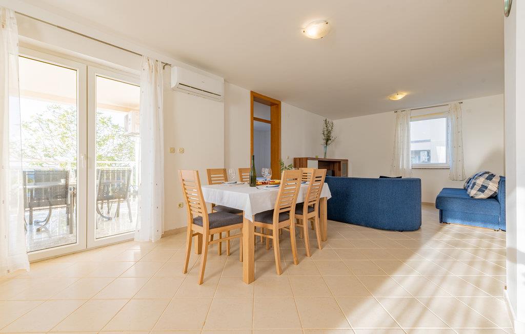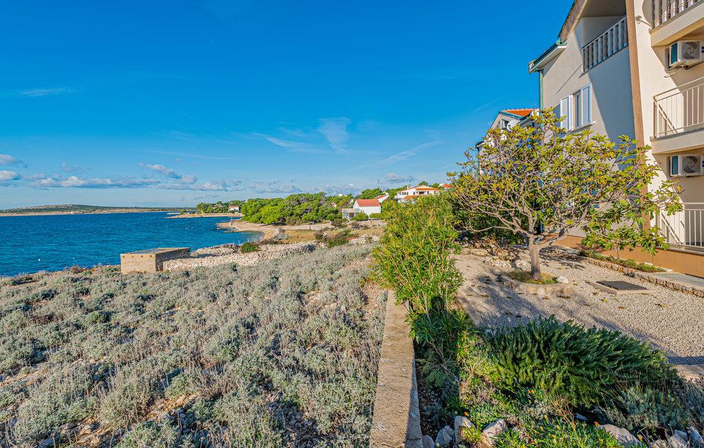 Denne skønne ferielejlighed er placeret i en moderne etageejendom. Her rykker I ind i en bolig, som emmer af stilfuld minimalisme og giver jer optimale rammer til at slappe af efter jeres ture rundt på øen Pag. I kan tilbringe aftenerne på den skyggefulde balkon og se de smukke solnedgange over havet. Her er der alt det, I skal bruge for at slappe af og have det rart, og I har desuden adgang til et fælles, lukket lokale, som I deler med husets øvrige gæster til socialt samvær og grillaftener.