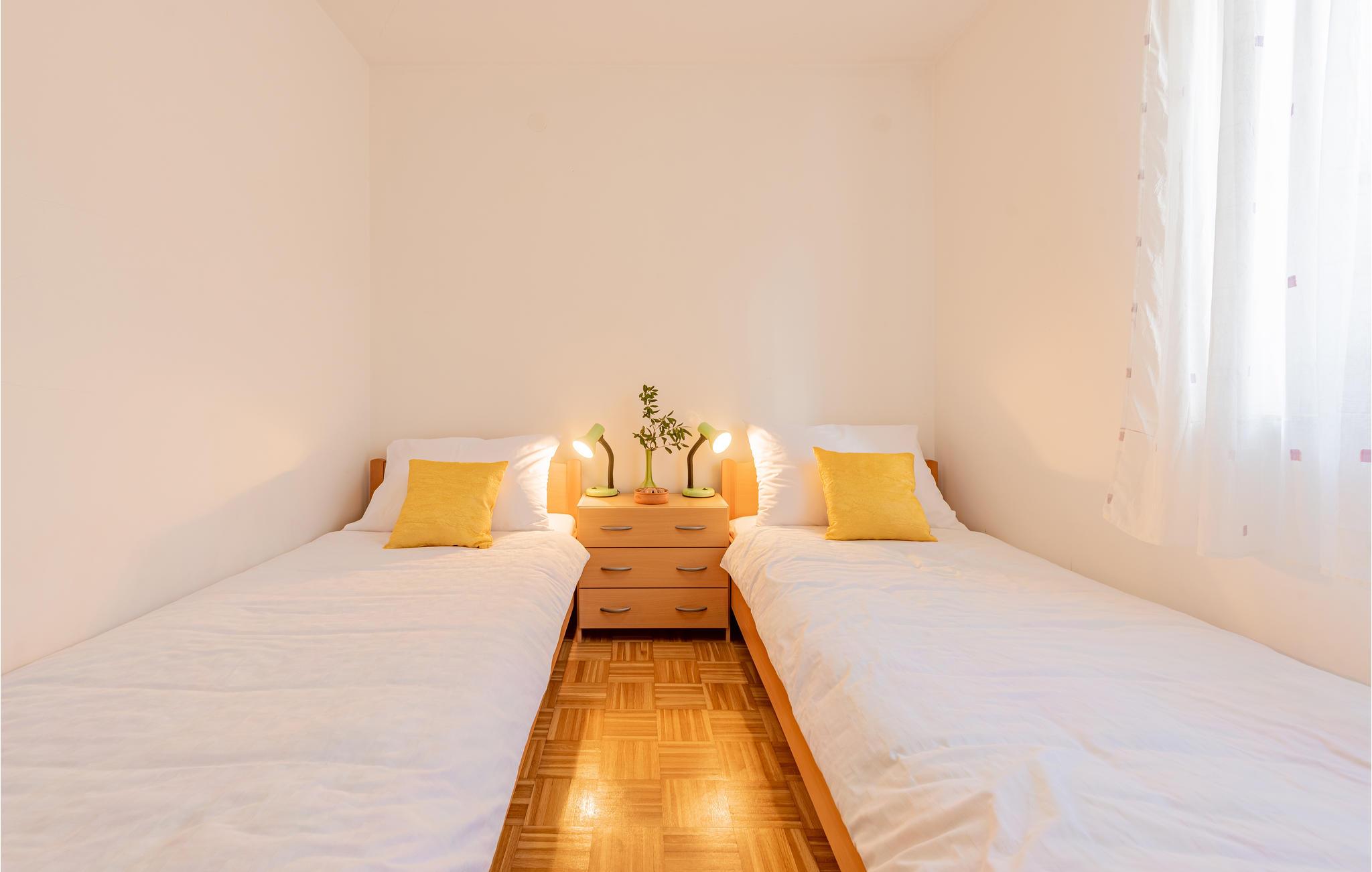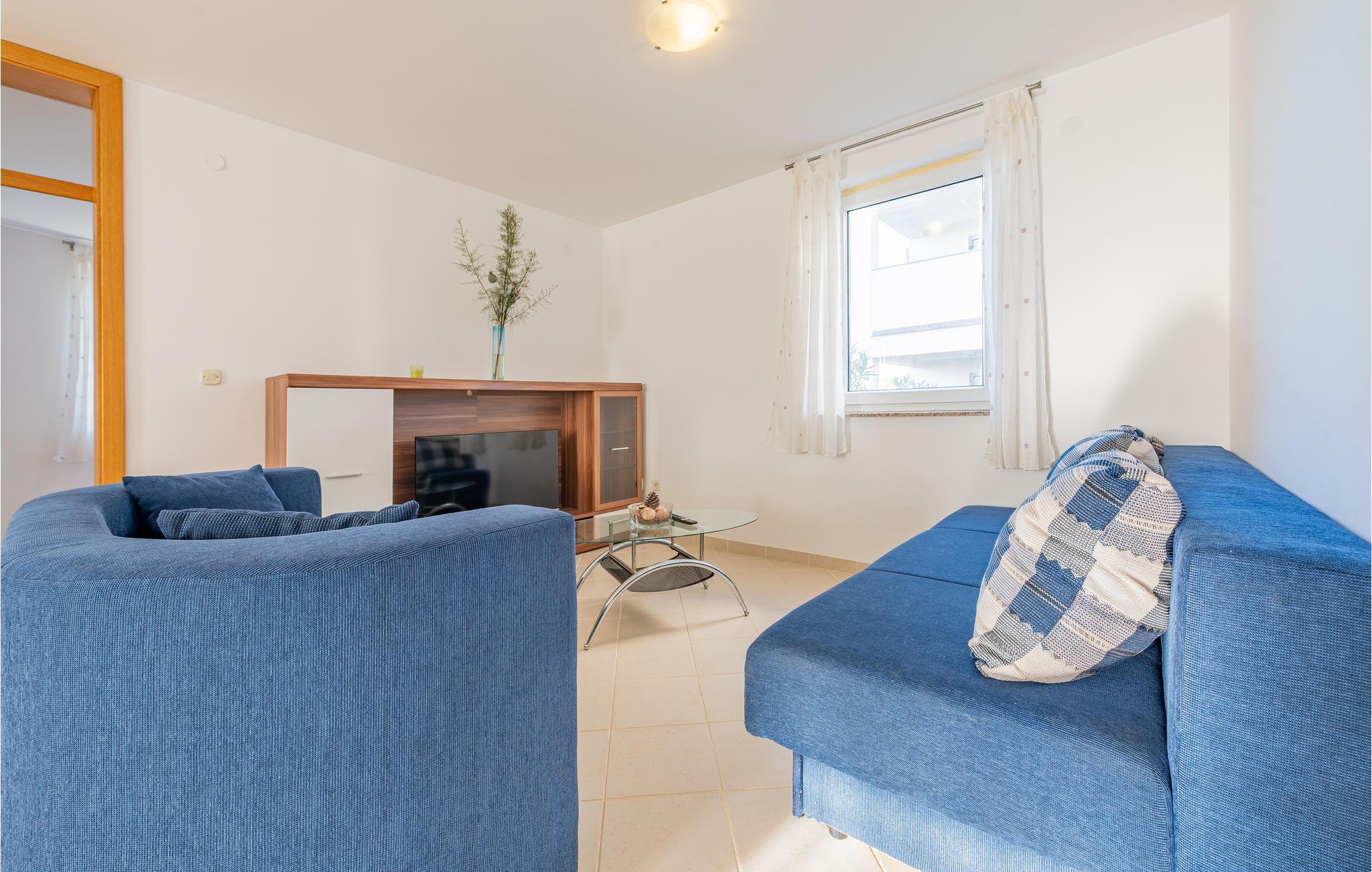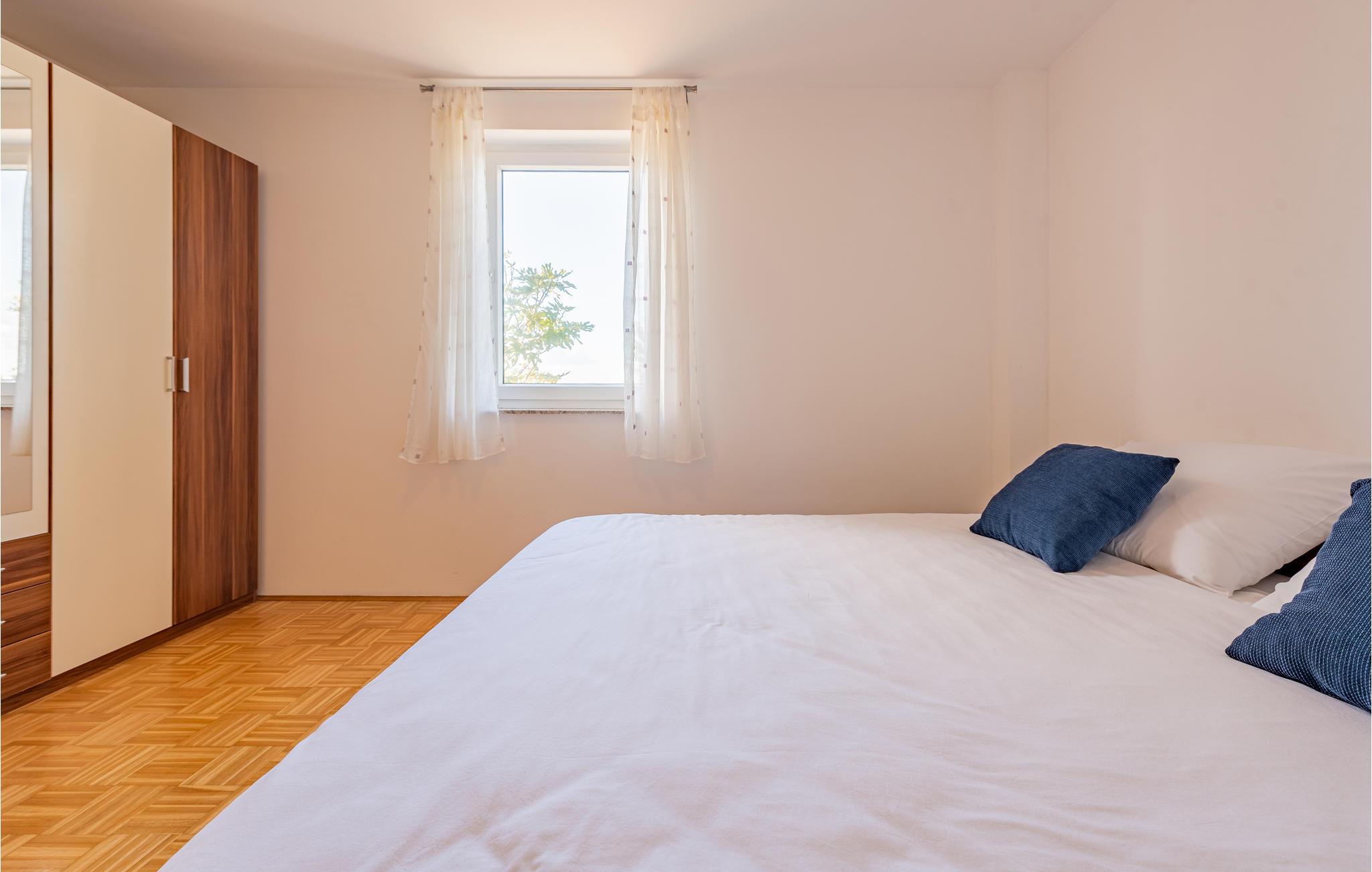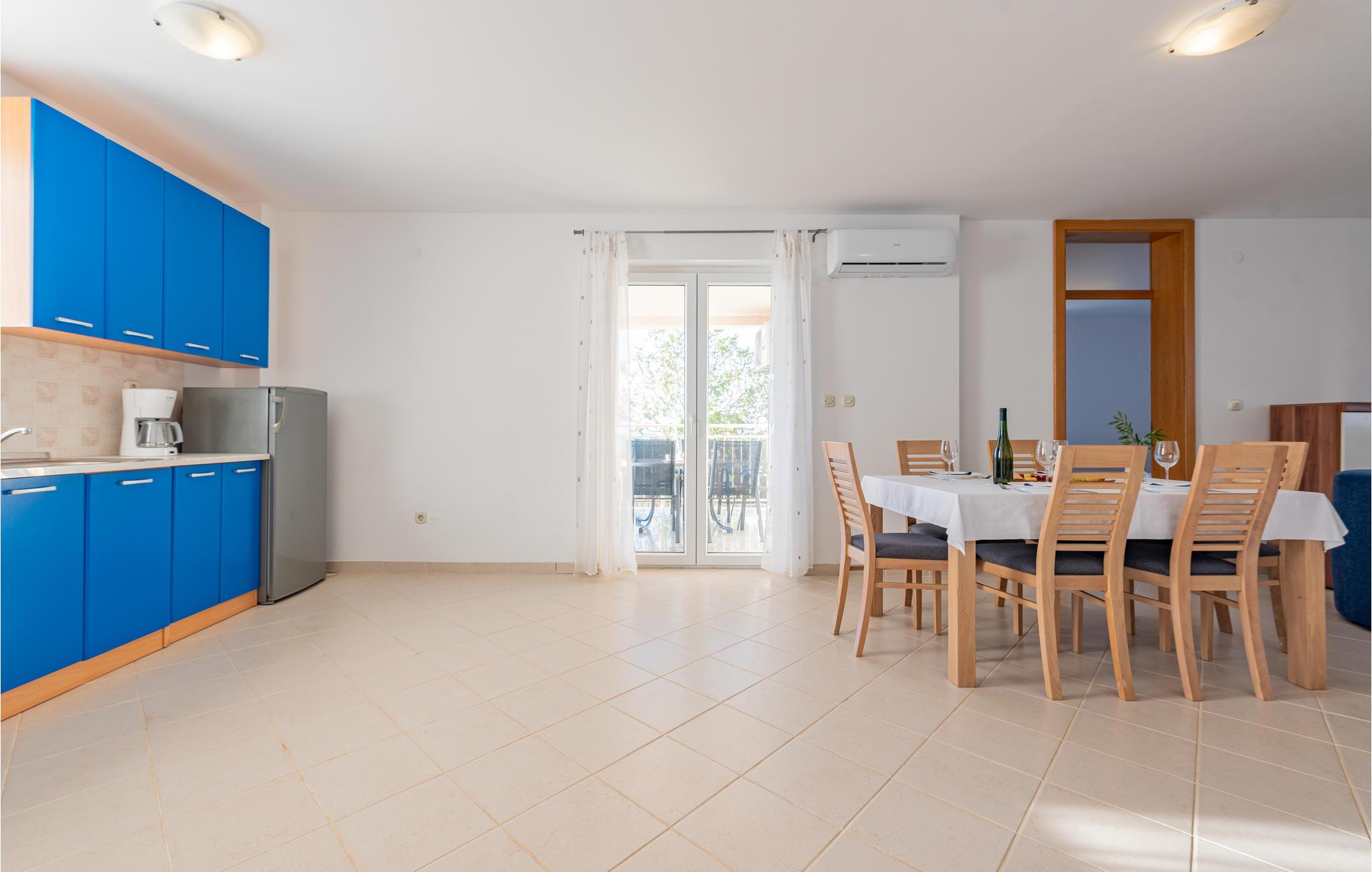 Denne skønne ferielejlighed er placeret i en moderne etageejendom. Her rykker I ind i en bolig, som emmer af stilfuld minimalisme og giver jer optimale rammer til at slappe af efter jeres ture rundt på øen Pag. I kan tilbringe aftenerne på den skyggefulde balkon og se de smukke solnedgange over havet. Her er der alt det, I skal bruge for at slappe af og have det rart, og I har desuden adgang til et fælles, lukket lokale, som I deler med husets øvrige gæster til socialt samvær og grillaftener.