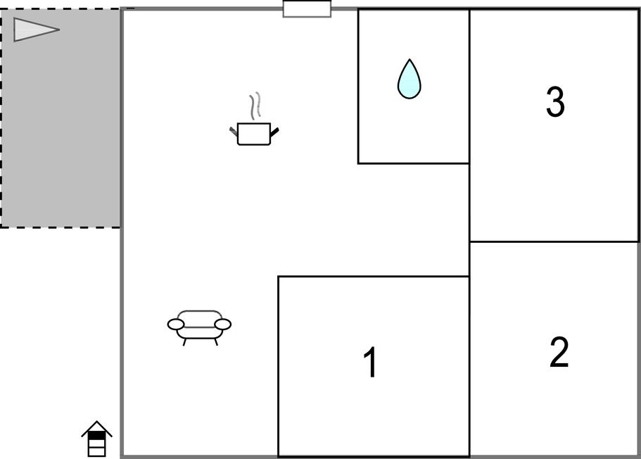 Opholdsstue/køkken 40m2 - 1 Soveplads. (Sofa, madras eller lignende).