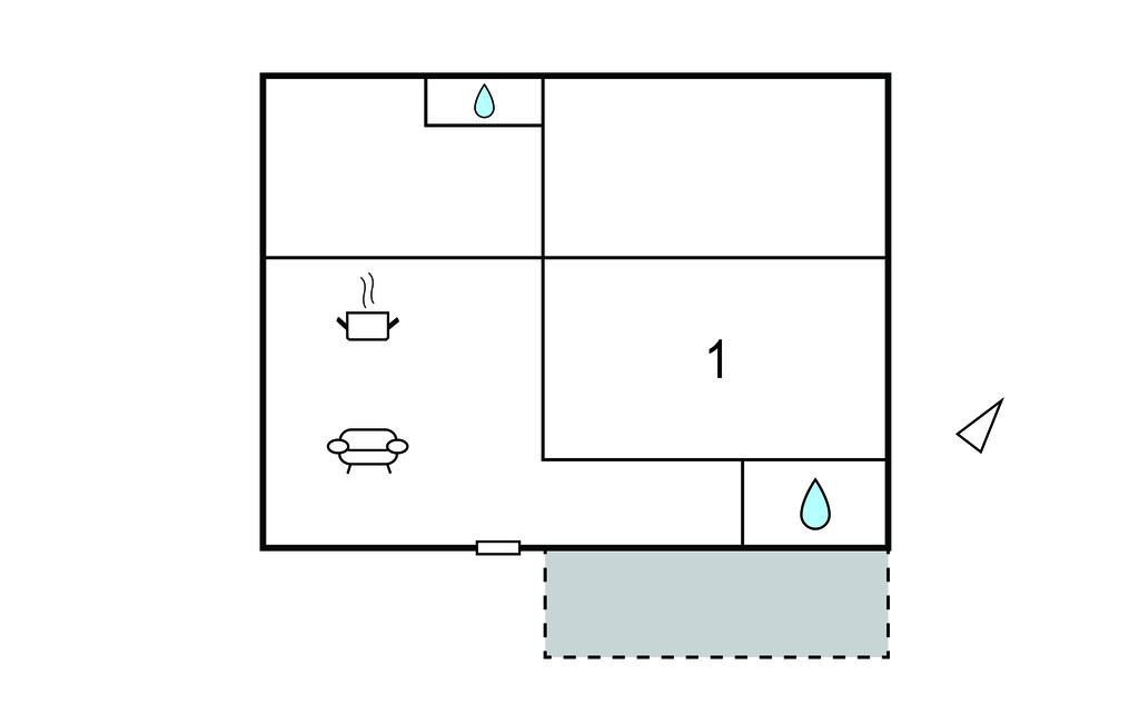 Opholdsstue/køkken 45m2 - 2 Sovepladser. (Sofa, madras eller lignende).