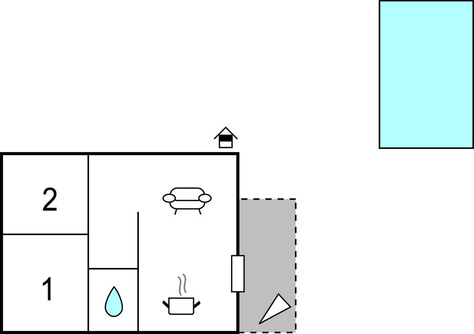Opholdsstue/køkken 18m2 - 1 Soveplads. (Sofa, madras eller lignende).