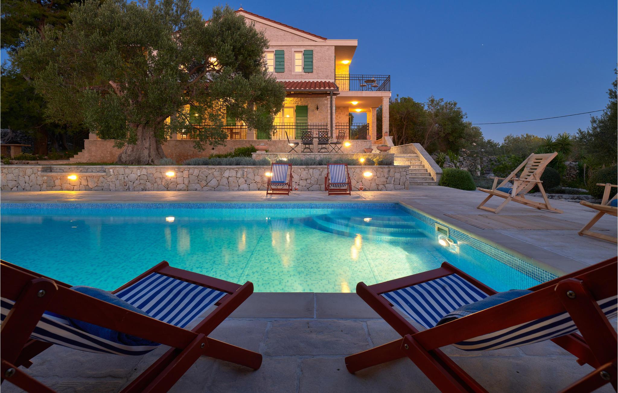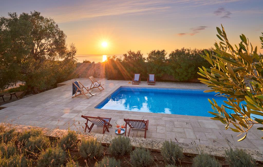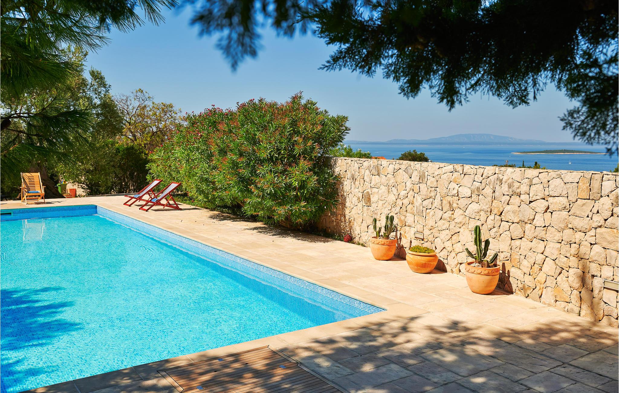 På den nordlige spids af øen Pag venter jer dette rummelige feriehus med swimmingpool og en yderst komfortabel indretning. Huset har et moderne og charmerende landhuskøkken, der har masser af plads til fælles madlavning og hygge. I har mulighed for at gøre, lige hvad der passer jer her. I kan trække jer tilbage til de private soveværelser, nogle med altan. I kan også mødes i stuen og spille spil og slappe af. Udenfor kommer I til at nyde mange solskinstimer på verandaen, og så kan I tage et forfriskende dyp i poolen, når varmen overvælder jer.