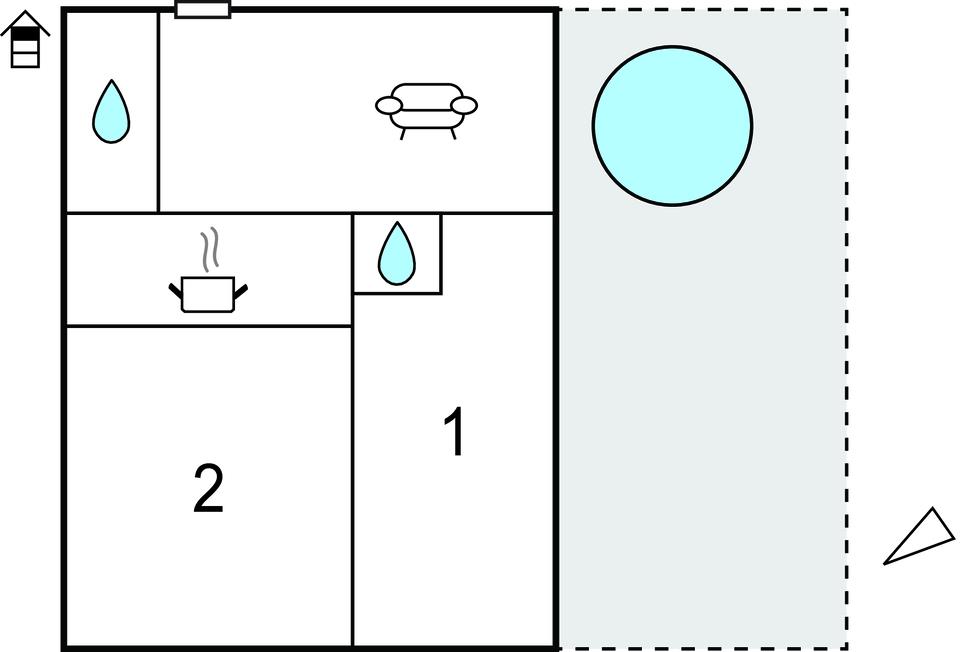 Opholdsstue/køkken 50m2 - 2 Sovepladser. (Sofa, madras eller lignende).