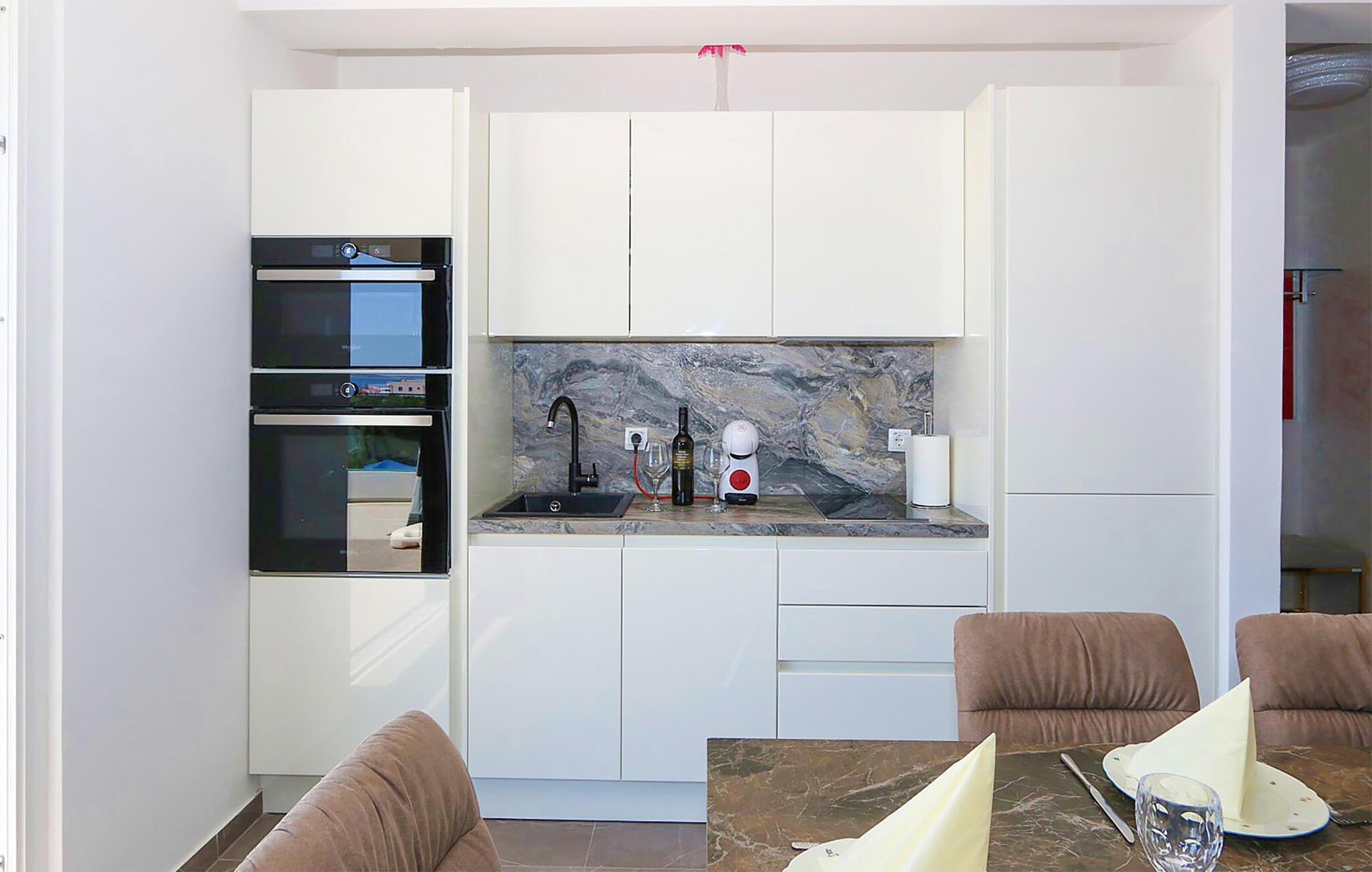 Forkæl jer selv med et ophold i denne penthouse i Mandre, som er kendt for sin maleriske kystlinje.