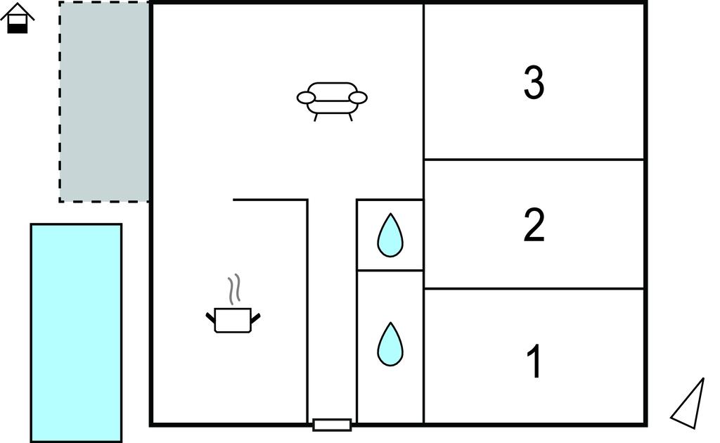 Opholdsstue/køkken 40m2 - 2 Sovepladser. (Sofa, madras eller lignende).