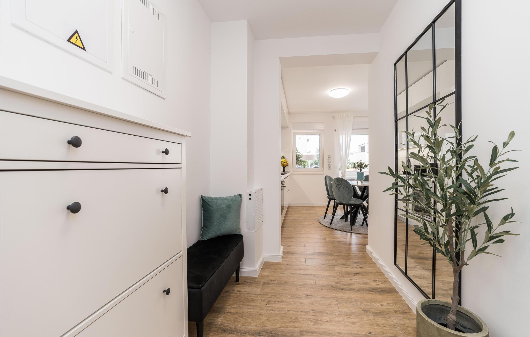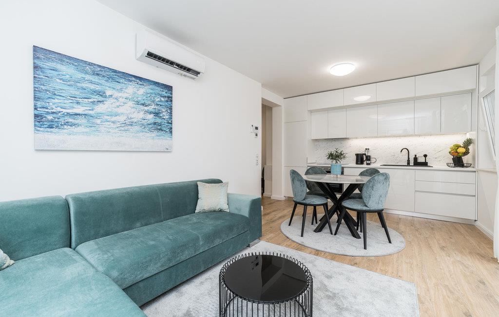 Denne lejlighed består af lyse rum og moderne indretningsløsninger, så her får I det optimale sted til en ferie, hvor I kun bor et stenkast fra stranden. Begynd dagene med en solid morgenmad, inden I skal ud på eventyr. Sofaen i stuen lægger op til hyggelige aftener med spil, samtaler eller en god film.
