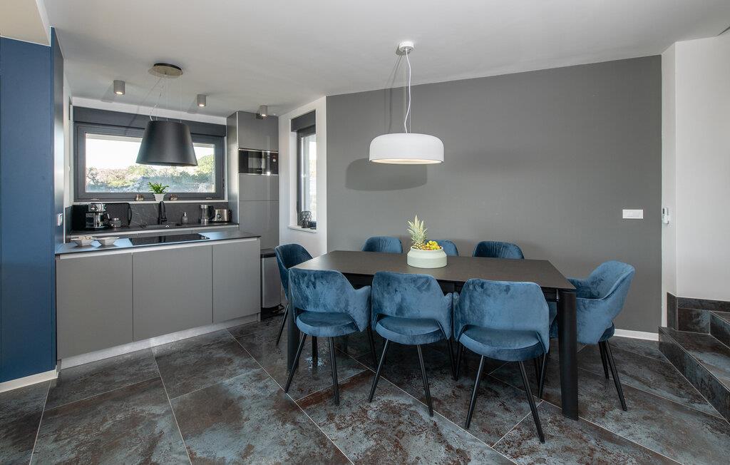 Denne moderne og stilfulde villa ligger i udkanten af ??den populære badeby Novalia, hvor der er lagt op til en ferie, der nærmest overgår fantasien. Indretningen fremtræder virkelig flot og moderne med sans for detaljen og den gode stil, og her får I de helt ideelle rammer for at kunne slappe af og helt glemme hverdagen derhjemme. Lad amatørkokkene kræse om livretterne i det veludstyrede køkken, mens andre slapper af i sofaen eller holder formen ved lige i fitness-lokalet. Efter aftensmaden kan I gøre noget ekstra godt for kroppen og svede godt igennem i sofaen, inden I runder dagen af med drinks og en god film i sofaen.