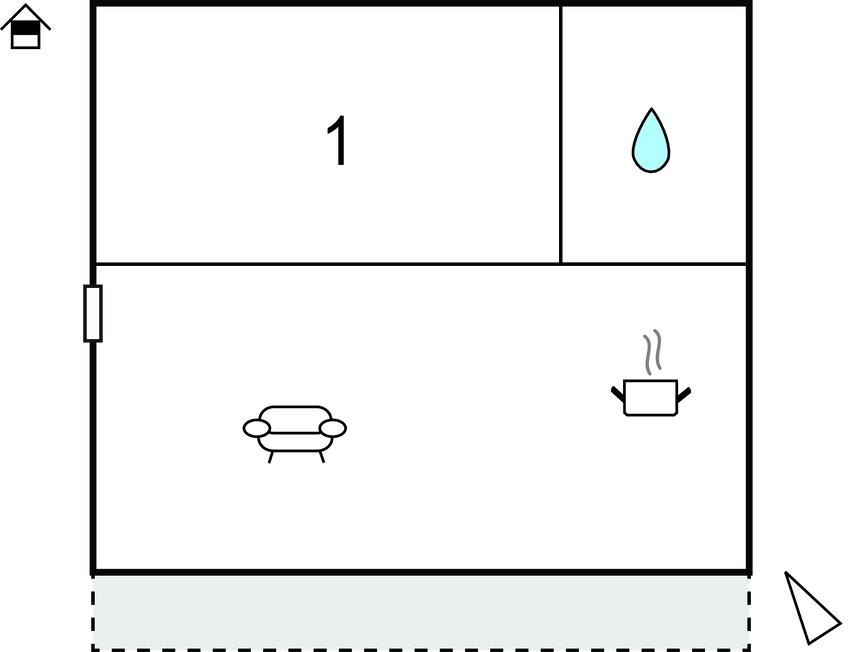 Opholdsstue/køkken 23m2 - 2 Sovepladser. (Sofa, madras eller lignende).