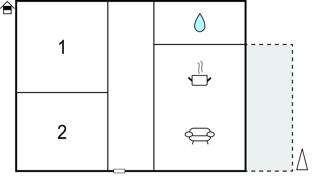 Udendørsområdet byder på en skøn terrasse, hvor I kan nyde havbrisen og havudsigten. Den nærliggende sandstrand er perfekt til solrige dage og afslappende timer ved vandet.
