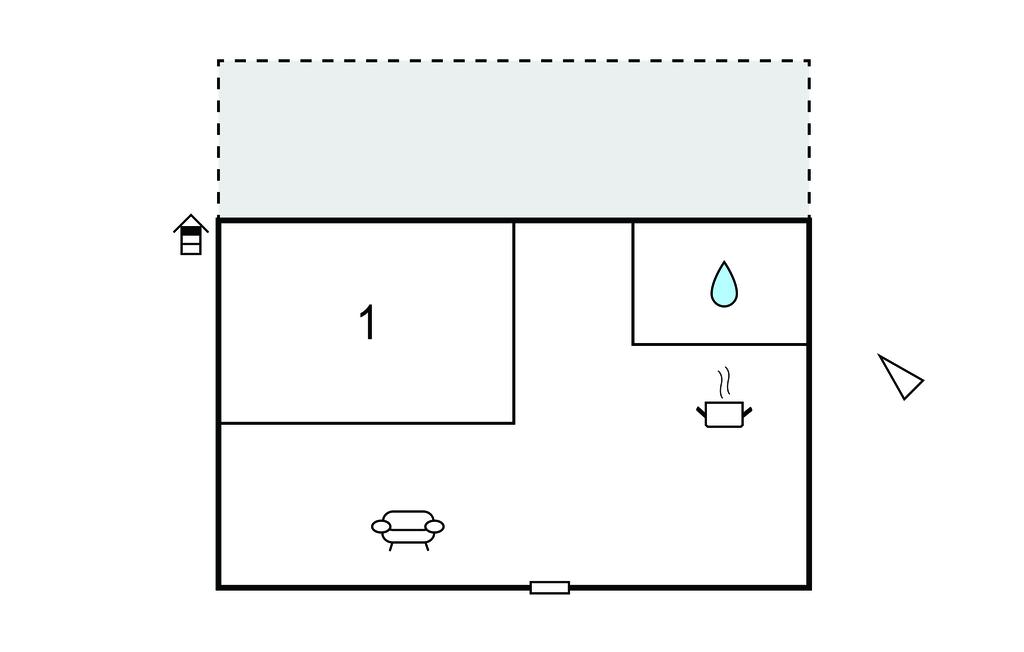 Opholdsstue/køkken 14m2 - 1 Soveplads. (Sofa, madras eller lignende).