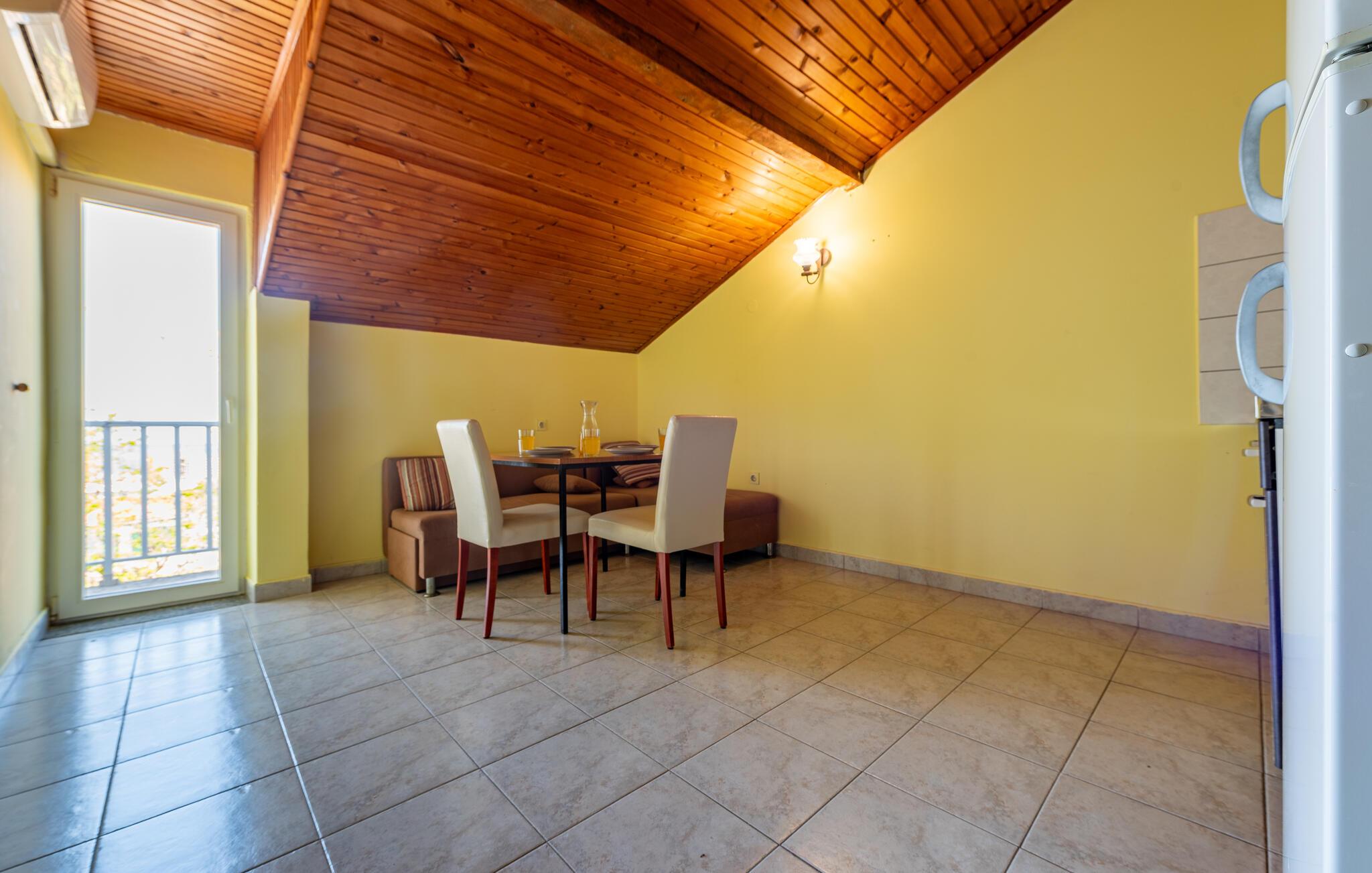 Denne charmerende ferielejlighed lægger op til en afslappende ferie på den smukke ø Pag. Brug det moderne tekøkken til at tilberede jeres yndlingsmåltider. Lad den forfriskende havbrise strømme gennem de lyse rum, og slap af efter en lang dag i solen, eller fordyb jer i en god bog, som I ikke finder tid til i hverdagen.