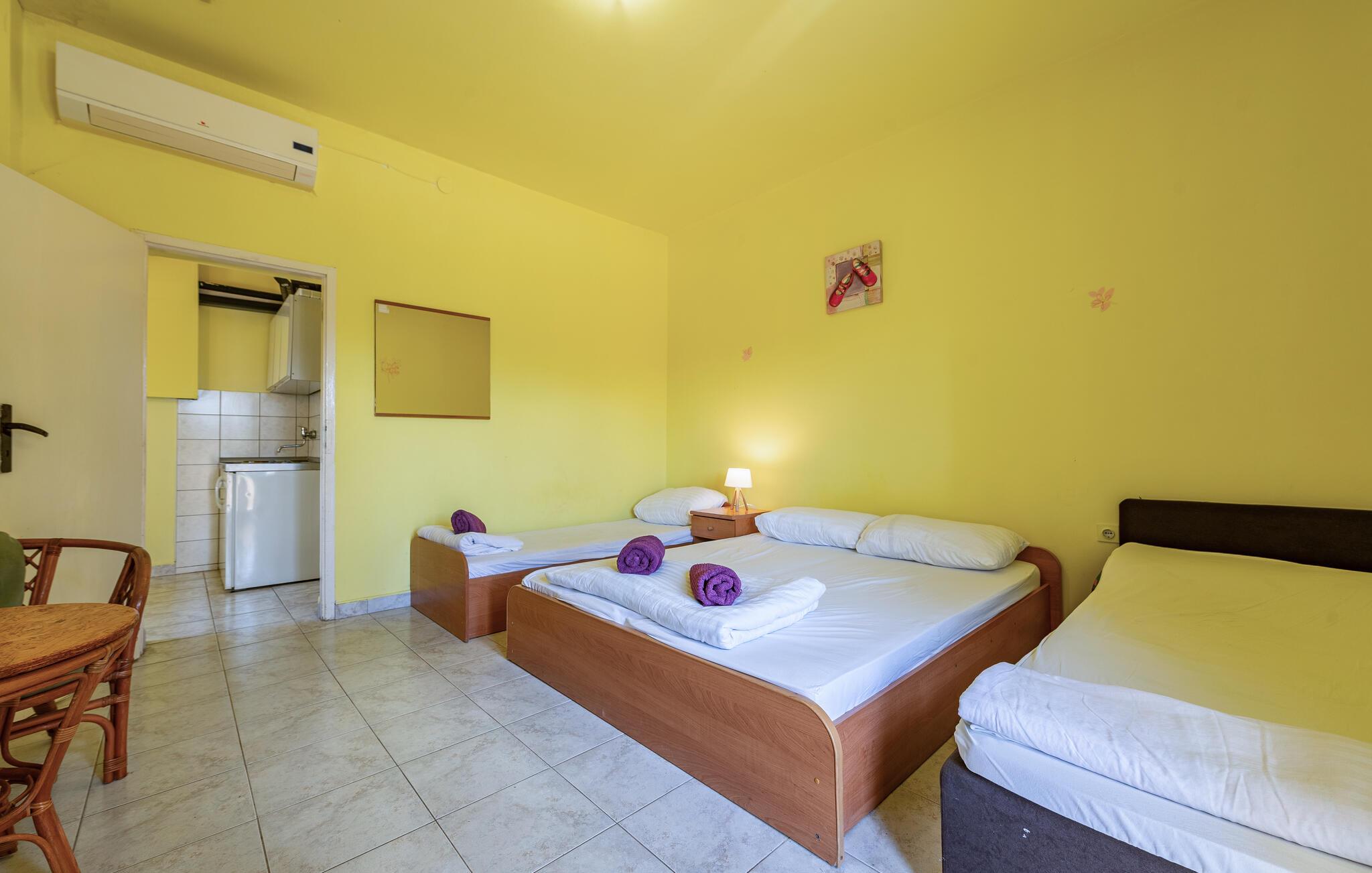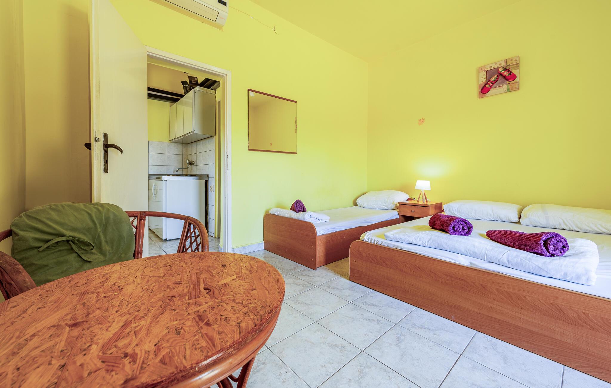 kun nogle få skridt fra den nærmeste sandstrand venter denne praktiske indkvartering på jer til en ukompliceret strandferie med god mad og naturskønne omgivelser. Den lyse ferielejlighed er kompakt, funktionel og tilbyder alt hvad I behøver for en afslappende ferie. Tilbered lette måltider og snacks til jeres udflugter i det lille tekøkken. Bagefter kan I slappe af på sofaen og lade tankerne vandre.
