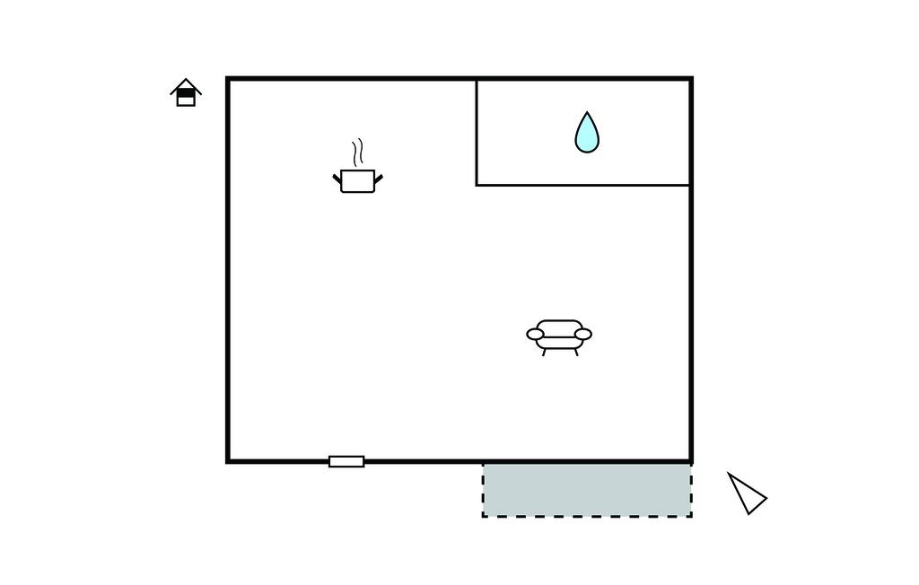 Opholdsstue/køkken 15m2 - 2 Sovepladser. (Dobbeltseng(e)).