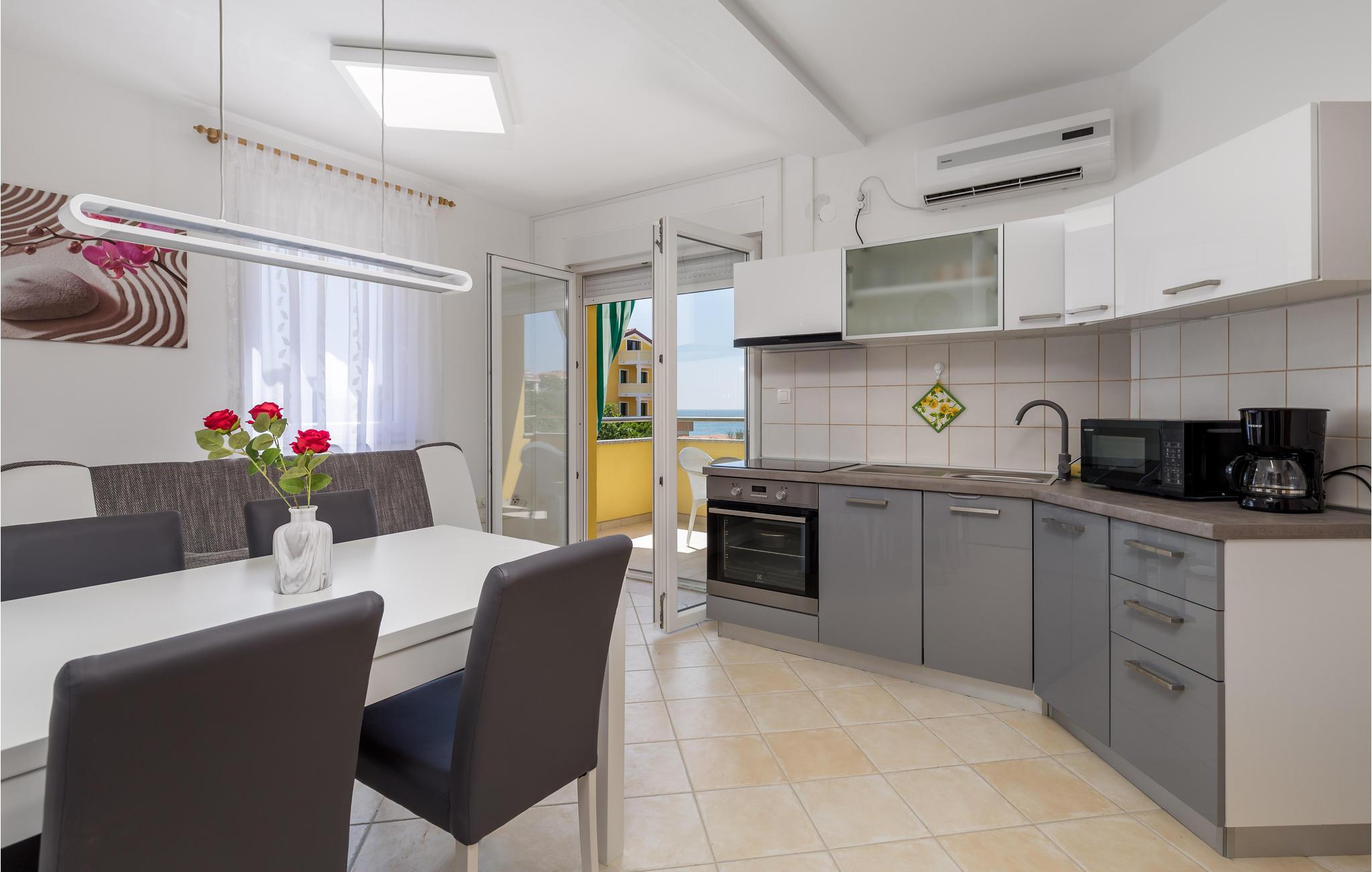 Tag familien med til dette dejlige feriehus for et behageligt ophold på den kroatiske ø Pag. Her kan I straks føle jer hjemme, da lejligheden er udstyret med alt hvad I behøver. Udnyt balkonen til at spise morgenmad i den friske luft, mens I nyder udsigten over havet, og planlægger dagens aktiviteter. Om aftenen kan I se solnedgangen over havet med et glas vin.