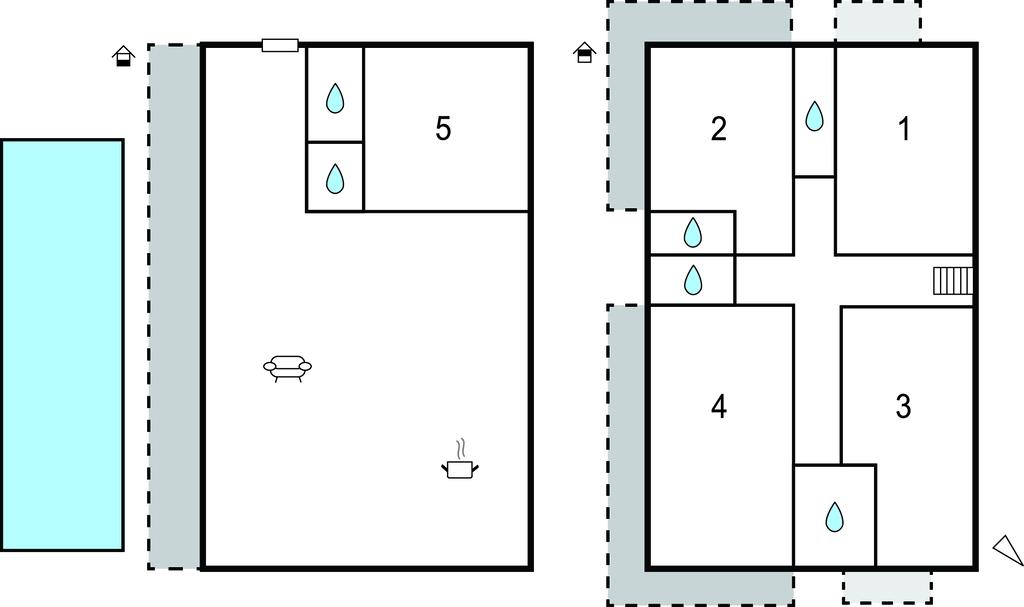 Badeværelse 6m2 (nr. 1) - WC. Varmt og koldt vand. Bruser
