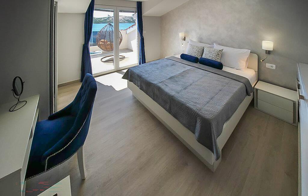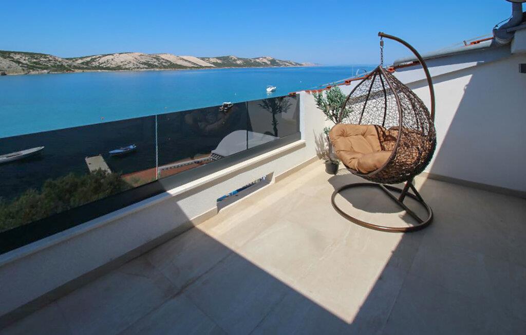Lad blikket vandre over bugtens turkisblå vand fra den store balkon. Brug liggestolene til solrige dage, læn jer tilbage i det overdækkede loungeområde eller find en plads i hængestolen. Liggestole er også tilgængelige på stranden lige nedenfor lejligheden.
