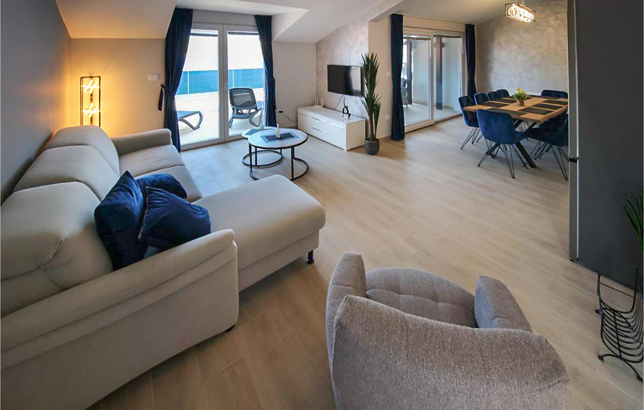 Oplev en ferie, der kombinerer ro, komfort og et enestående panorama. Denne moderne lejlighed har en førsteklasses beliggenhed med udsigt over havet og kan prale af en særlig behagelig atmosfære. Slap af på den rummelige sofa og nyd udsigten, som kan nydes indefra. Tilbered jeres måltider i det moderne køkken og spis ved det lange spisebord, som tilbyder rigelig plads til fælles måltider. Hvis I foretrækker at spise ude, er der en restaurant i stueetagen.