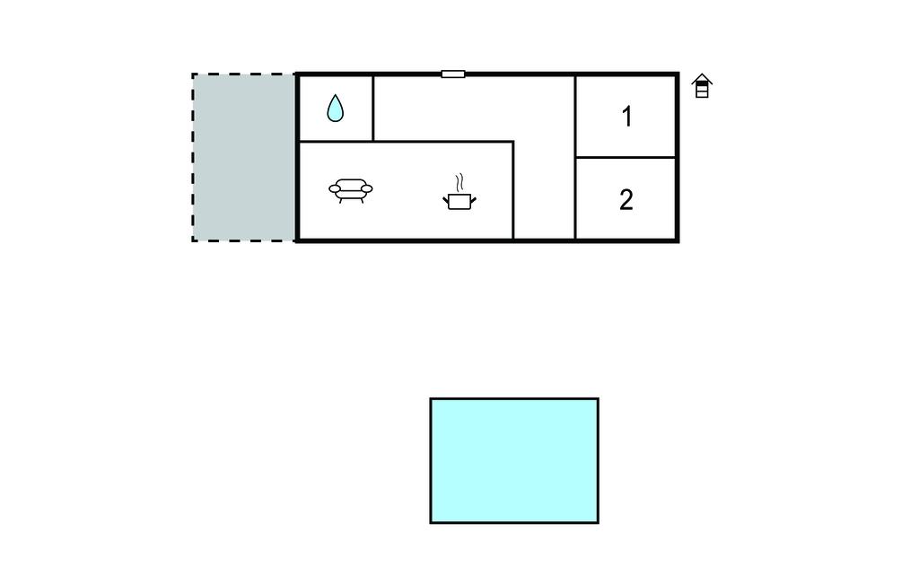 Opholdsstue/køkken 40m2 - 1 Soveplads. (Sofa, madras eller lignende).