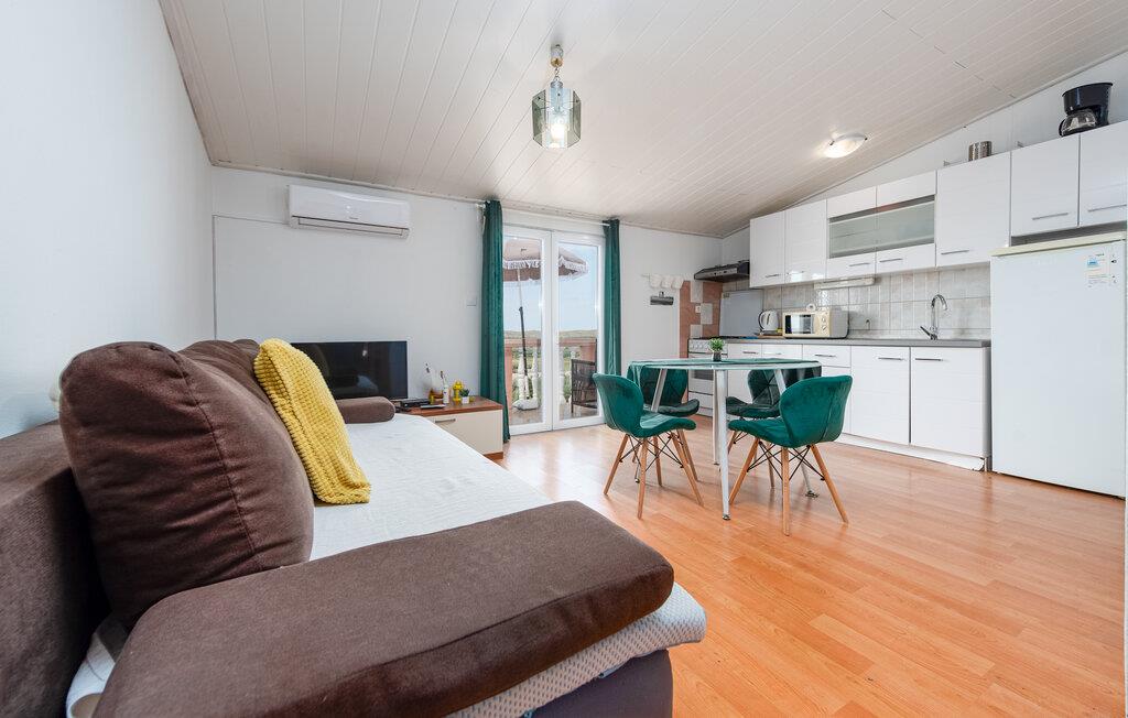 Glæd jer til afslappende dage i denne hyggelige ferielejlighed med adgang til poolen. Dette rummelige feriehus er ideelt for dem, der søger fred og ro, og som ønsker at lægge hverdagen bag sig i smukke omgivelser. Forkæl hinanden med jeres yndlingsretter, nyd harmoniske måltider, mens I kigger ud over det vidtstrakte landskab, og slap af efter en lang dag i den behagelige sofa for at streame en film eller tilbringe tid med familien under en spilleaften. Nyd jeres første kaffe på jeres terrasse i skyggen af parasollen. Bagefter kan I slentre til den fælles pool, nyde solen på en liggestol eller hygge jer omkring grillen. Vandr på Life on Mars-ruten nær Metajna og nyd den spektakulære udsigt over det golde månelandskab. Besøg saltmarsken i Pag, tag en bådtur til Zavratnica-bugten, og nyd regionale specialiteter i den nærliggende restaurant.