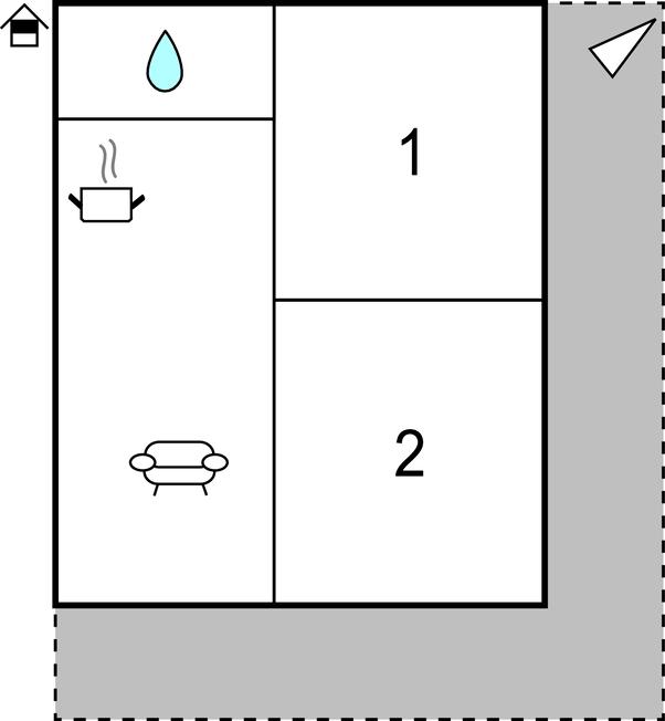 Opholdsstue/køkken - 1 Soveplads. (Sofa, madras eller lignende).