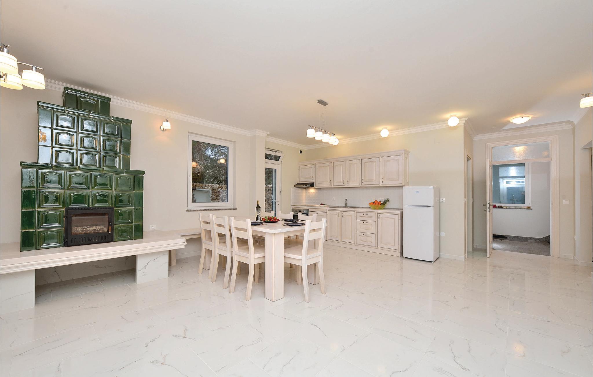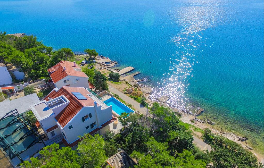 Bo i dette vidunderlige feriehus med pool, næsten direkte ved kiesstranden, kun adskilt af en lille vej. Den lille, rolige by Košljun er velegnet til afslapning af krop og sjæl. Grunden er omgivet af stenmure, og der gror middelhavsplanter som rosmarin, palmer og oleander. Inden for stenmurene er der anbragt lamper, og alle møbler er håndlavede, hvilket bidrager til en atmosfære af rent velvære. På bygningens bagside er der et udendørs køkken med mobil bar. Ferieboligen i tre etager, og i tagetagen med mindste loftshøjde 160 cm er der en romantisk terrasse med panoramaudsigt til havet. Øen Pag prydes af dejlige, både levende og ensomme bugter. En særlig anbefaling værd er øens kulinariske specialiteter i form af den særlige fåreost og lammekødet. Ved den populære strand Zrce er der velrenommerede festivaller med elektronisk musik hver sommer. Fra byen Pag og forbi et gammelt romersk saltværk, fører vejen til Kosljun, Der også er kendt som den ældste kendte vej på øen. Byen Kosljun husede siden det 14. århundrede hovedhavnen på øen, hvorfra saltet blev udskibet. Nu har havnen forvandlet sig til en marina for fritidsfartøjer og mindre skibe. Byen er omgivet af marker og mejerier, se dem på en tur på cykel eller gå en tur gennem landskaberne. Kosljun er også kendt for sit rene, friske drikkevand. Bugten indbyder til alle former for vandsport og lystfiskeri. Der sydes stadig salt på øen på naturlig vis, som øen er kendt for vidt om. Her er fremragende forbindelser til fastlandet.