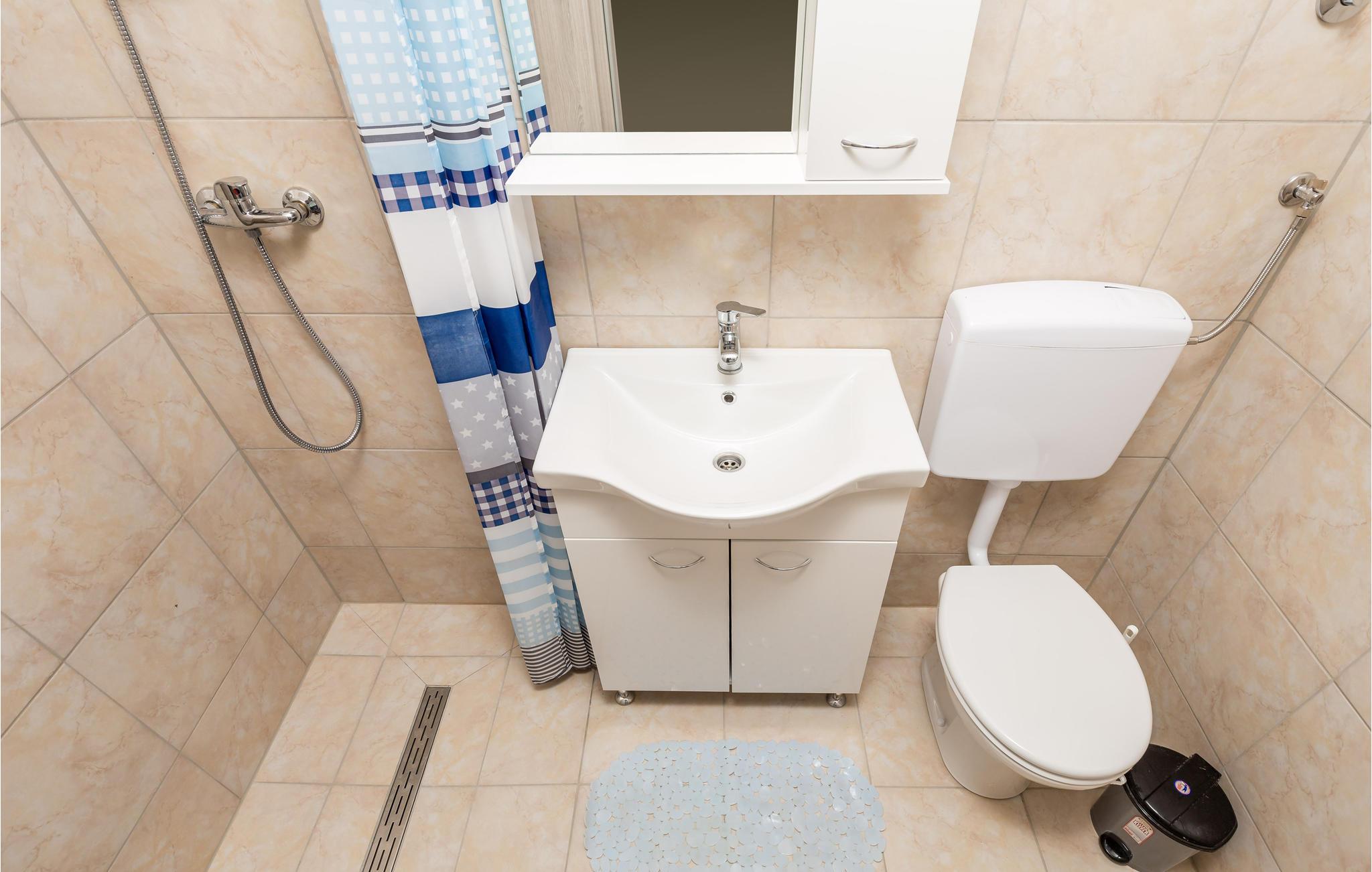 Badeværelse 4m2 (nr. 1) - WC. Varmt og koldt vand. Håndbruser