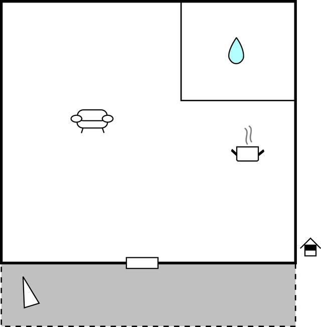 Komb. spisestue/køkken 18m2 - 2 Sovepladser. (Enkeltseng(e)).