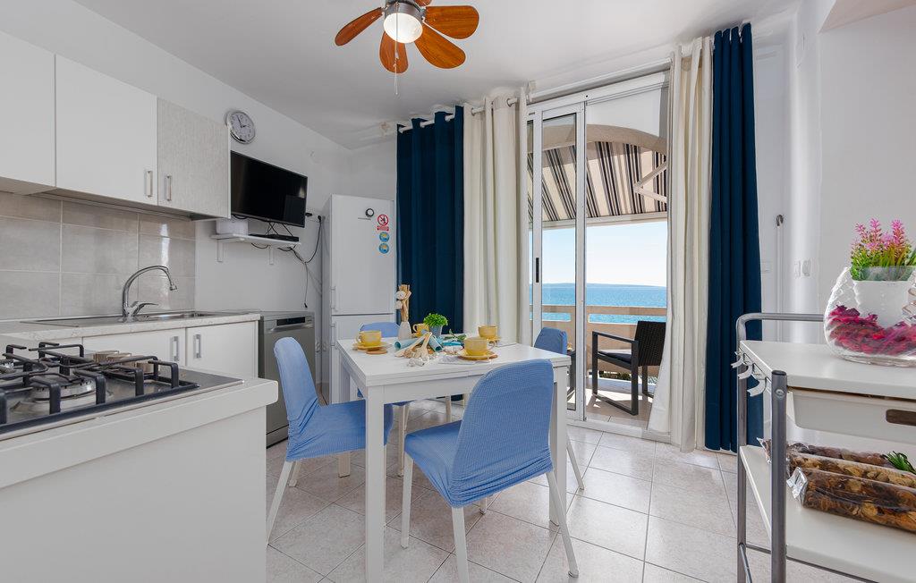 Denne lejlighed er lys og charmerende, så her får I en skøn ramme om jeres dage i Kroatien. Tilbered en lækker morgenmad i spisekøkkenet og sæt jer til rette med en god kop kaffe og den fænomenale udsigt til havet.