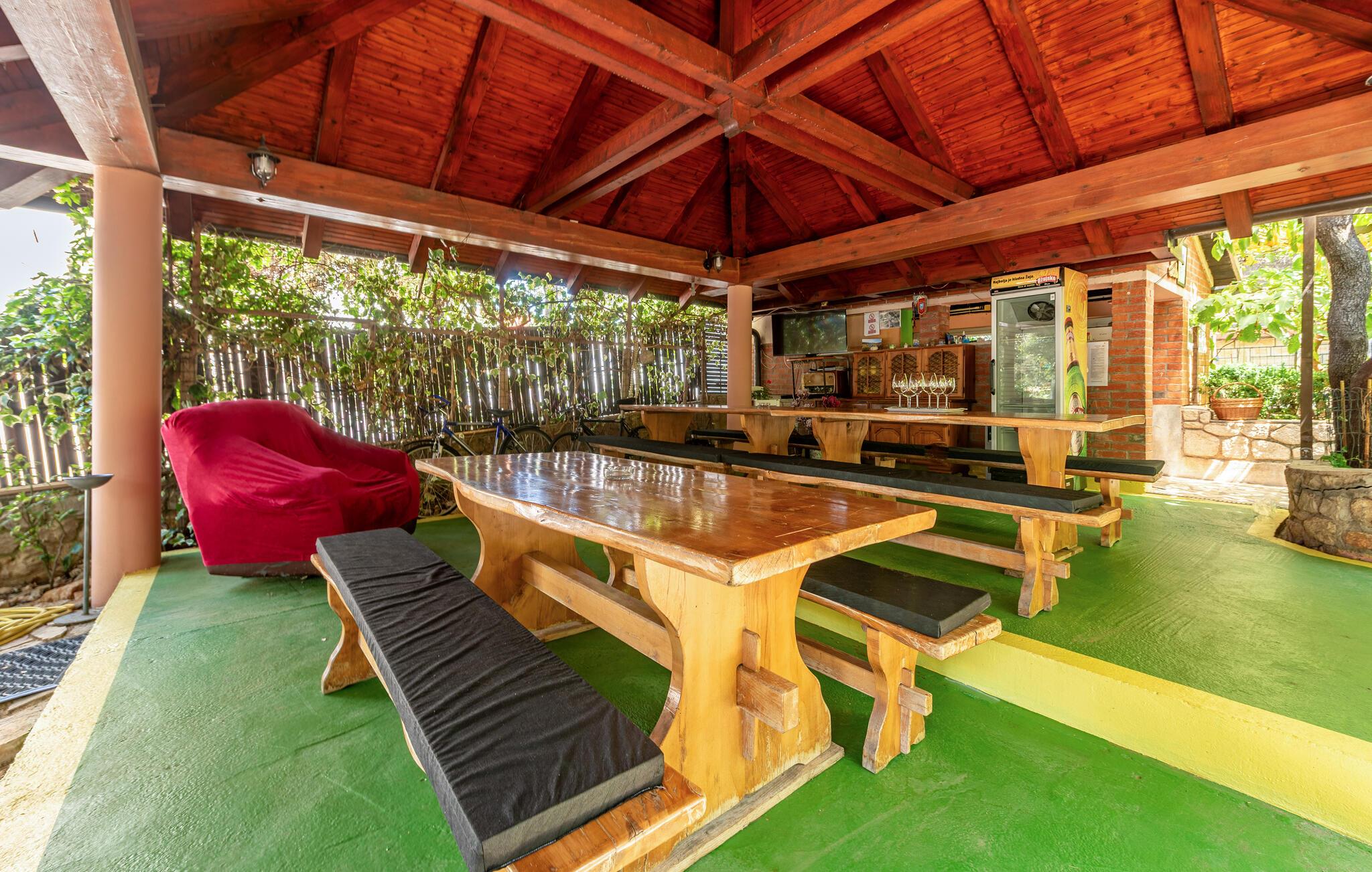 Glæd jer til dejlige måltider på jeres rummelige, overdækkede terrasse og nyd den smukke havudsigt. Brug de fælles grillfaciliteter til hyggelige aftener, hyg jer i udekøkkenet, spil bordtennis og lad jeres børn nyde de mange legemuligheder på den omfattende, fredede ejendom.