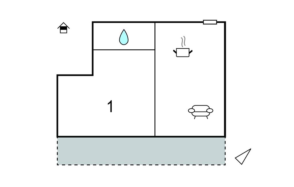 Opholdsstue/køkken 20m2 - 2 Sovepladser. (Enkeltseng(e)).