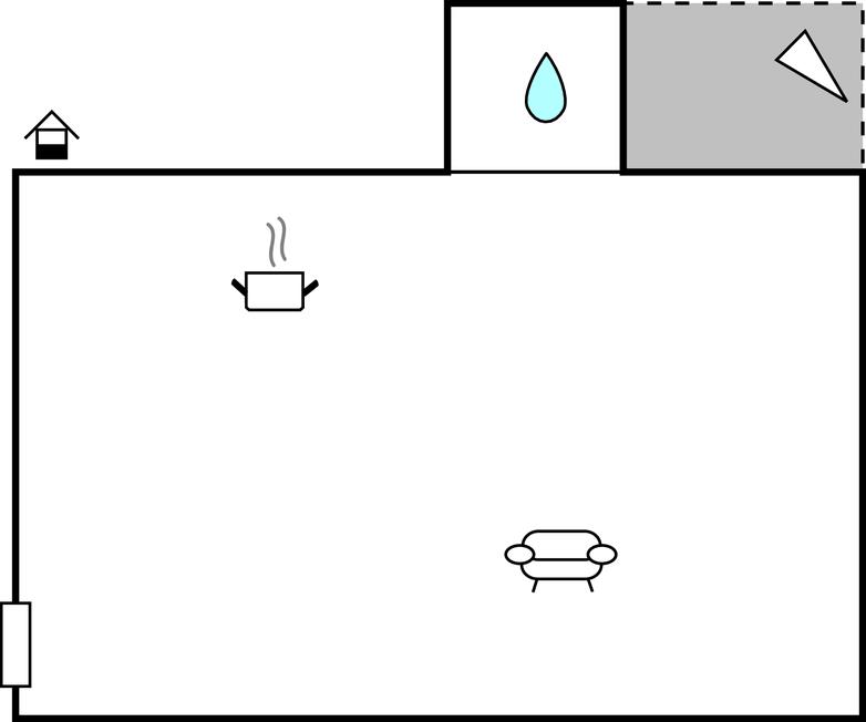 Opholdsstue/køkken - 2 Sovepladser. (Enkeltseng(e)). 1 Soveplads. (Sofa, madras eller lignende).