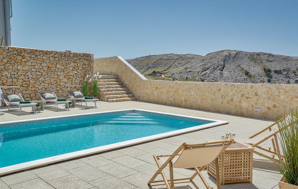 Udenfor venter den smukke private pool omgivet af den rummelige terrasse, der både inviterer dig til at slappe af og slappe af, uanset om du vil have det meste ud af den fortryllende udsigt, køle af og svømme et par omgange eller bare slappe af med en god bog eller en forfriskende drink.