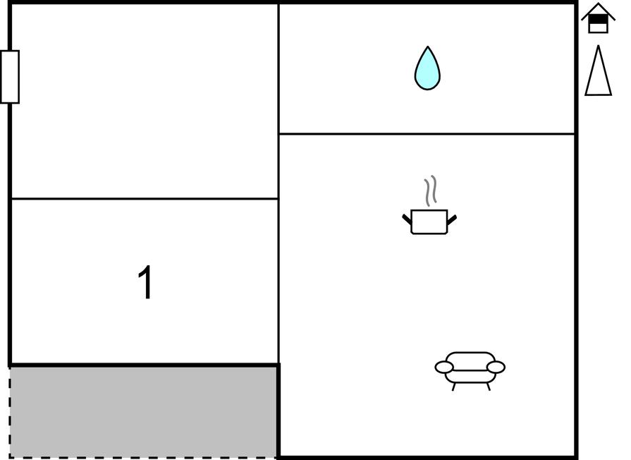 Opholdsstue/køkken - 1 Soveplads. (Sofa, madras eller lignende).