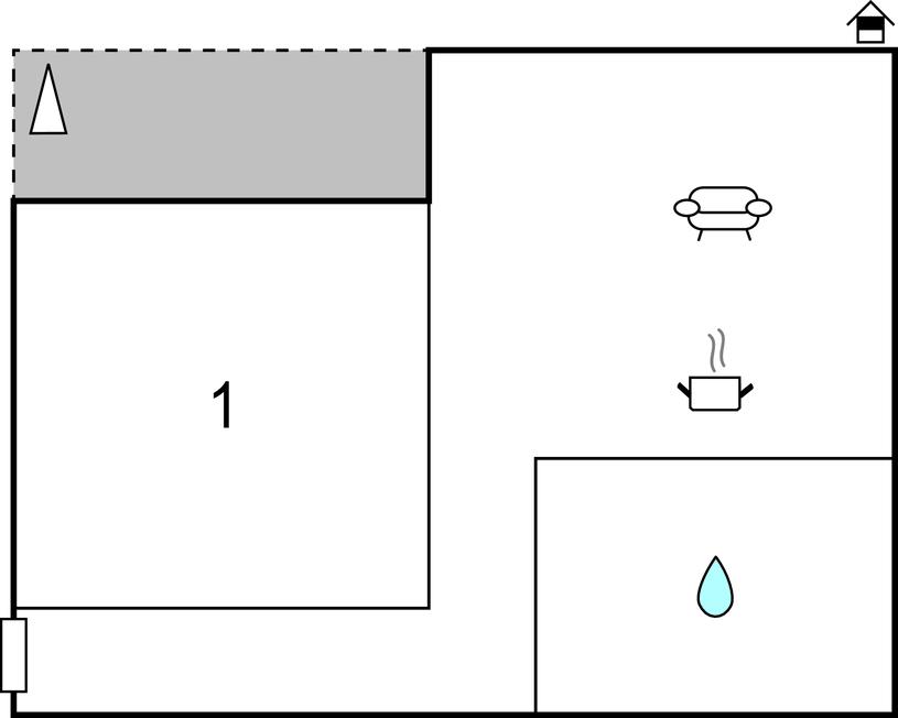 Opholdsstue/køkken - 1 Soveplads. (Sofa, madras eller lignende).