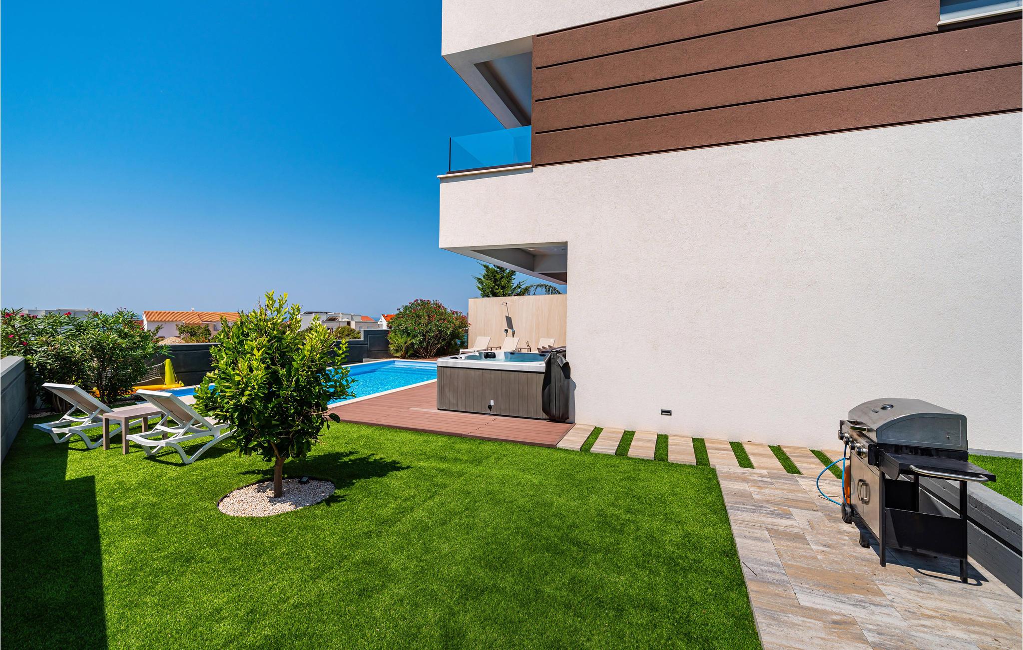 Udearealet bliver det naturlige mødested for familien, for når vejret er godt, vil alle gerne elske at opholde sig i den indhegnede have, også jeres elskede firbenede ven. En stor swimmingpool vil være et hit, og et spabad inviterer dig, de voksne, til at massere spændte muskler og slappe af. Pak badetøjet og tag mod sandstranden i Novalja. Her kan I slappe af og dykke ned i det blå hav. I kystbyen finder I alt hvad I behøver til jeres ferie. I finder restauranter, barer og caféer og kan smage mange af de lokale delikatesser. Har I lyst til at dyrke sport på ferien, har I mange muligheder for at udforske øen til fods eller på cykel. Vandsportsentusiaster vil også få noget for pengene her, prøv for eksempel windsurfing.