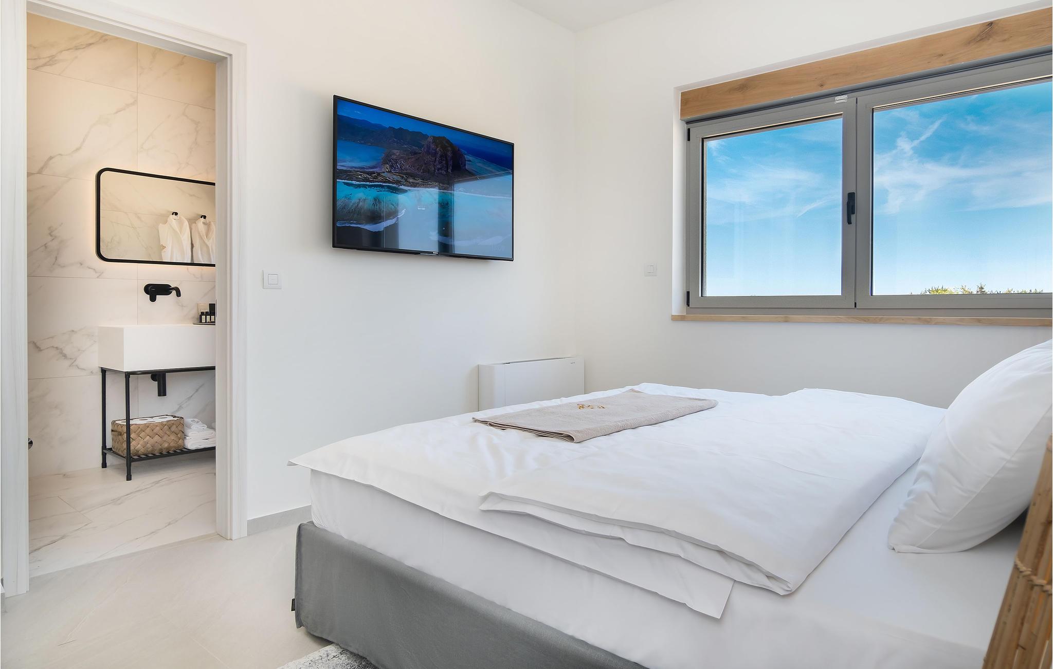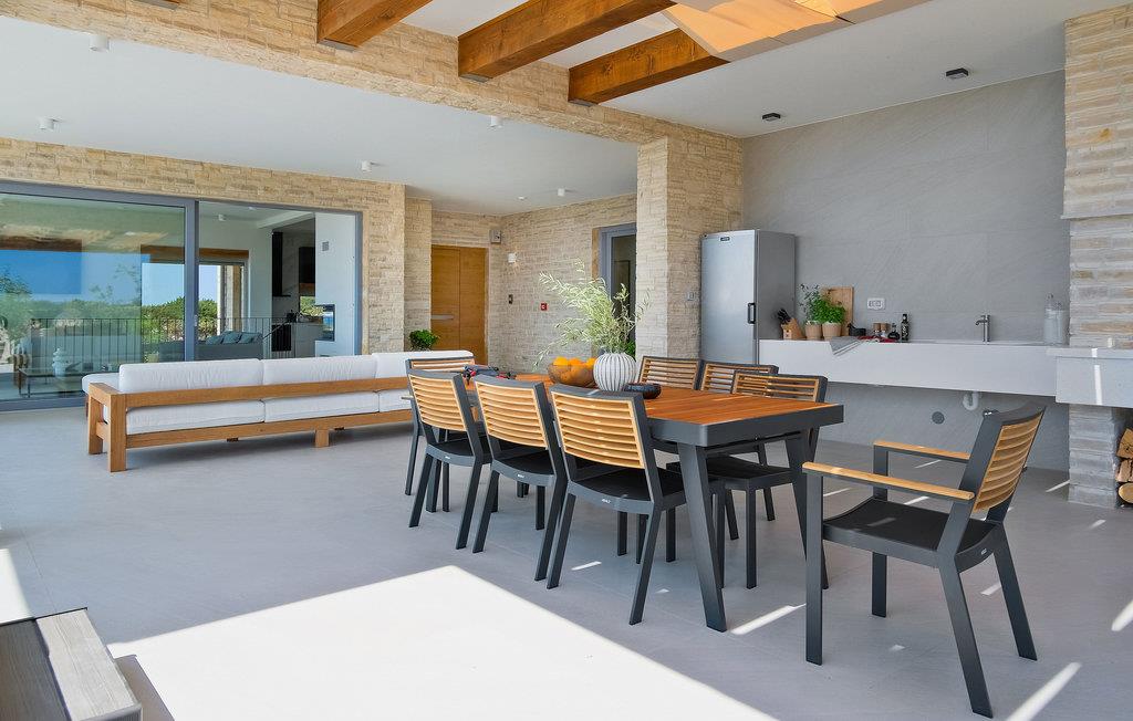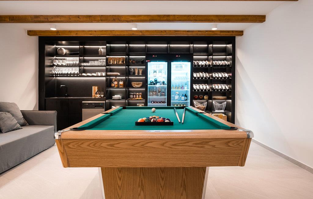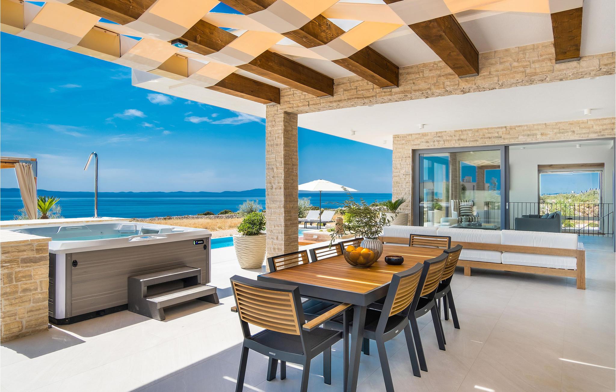 Dette store hus har en fantastisk beliggenhed på øen Pag. Indenfor kan I se frem til en velindrettet og indbydende bolig med gennemtænkte løsninger og materialer af høj kvalitet. Tilbered jeres ferieretter i det attraktive køkken, mens I kaster et blik på omgivelserne eller slapper af på sofaen med en god bog og den smukke udsigt. Hvis I får brug for at køle ned, er der kun få skridt til poolen. Aktivitetsrummet giver jer mulighed for at snuppe et spil billard eller læne jer tilbage med en drink i sofaen.