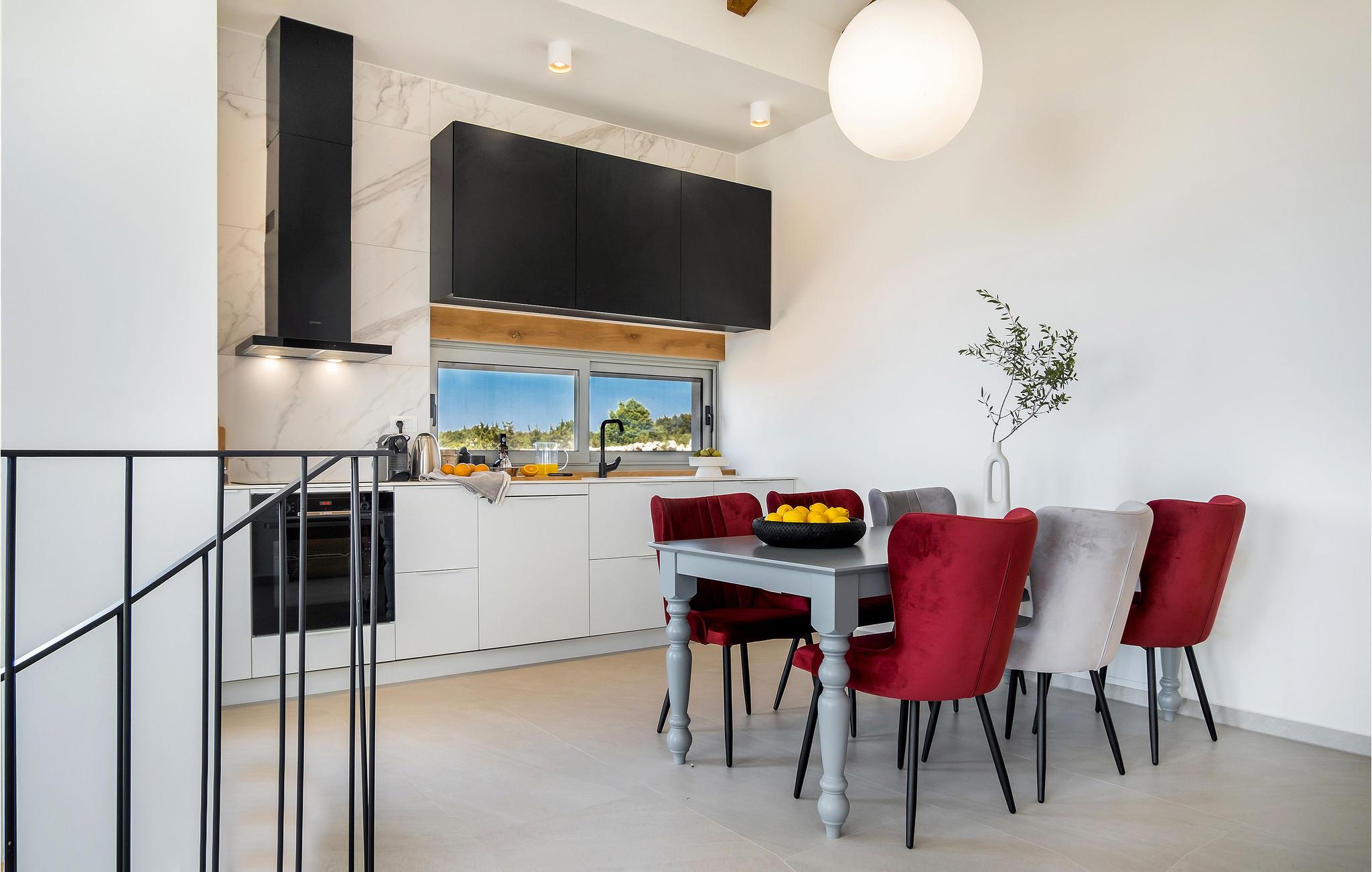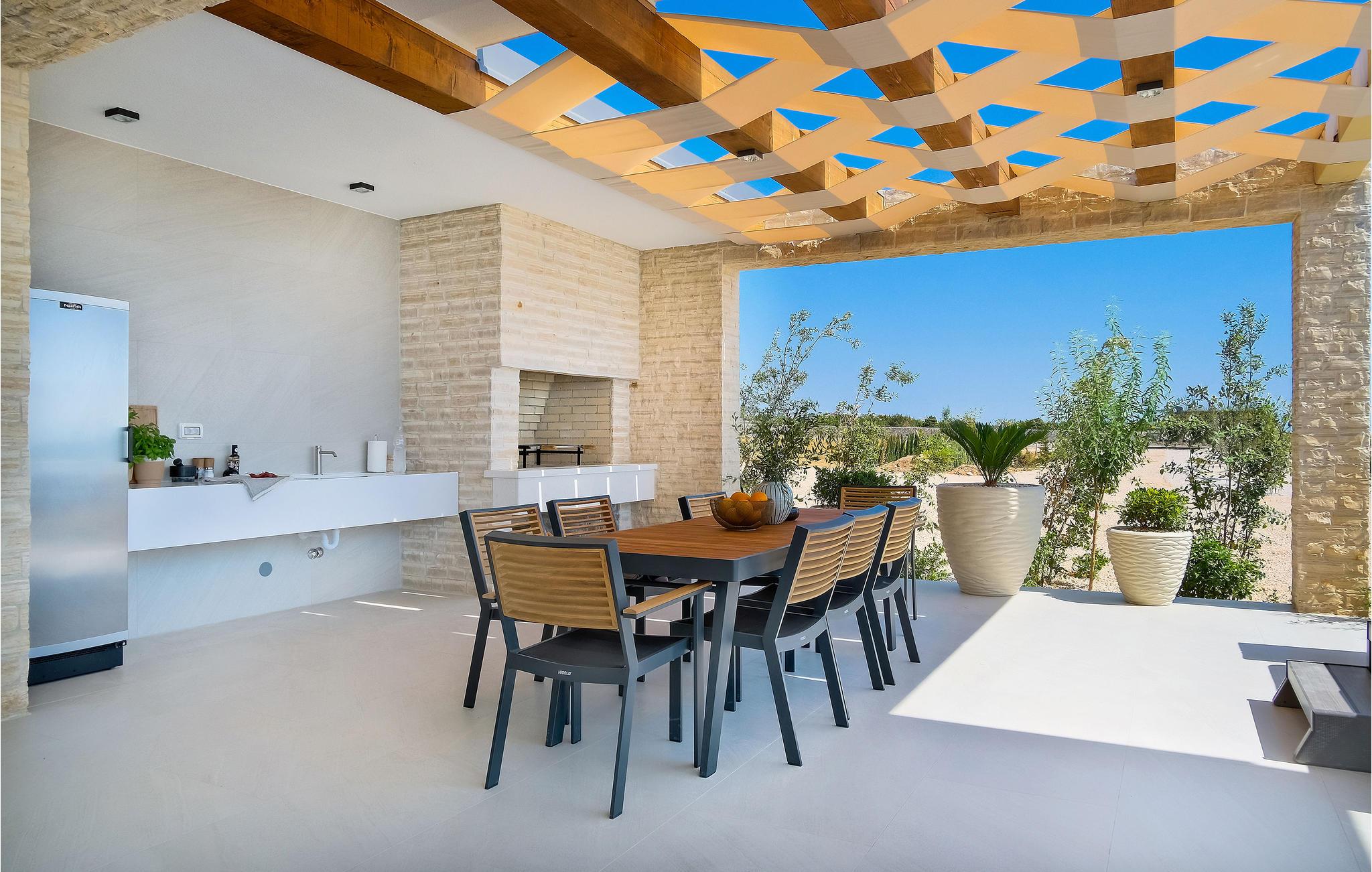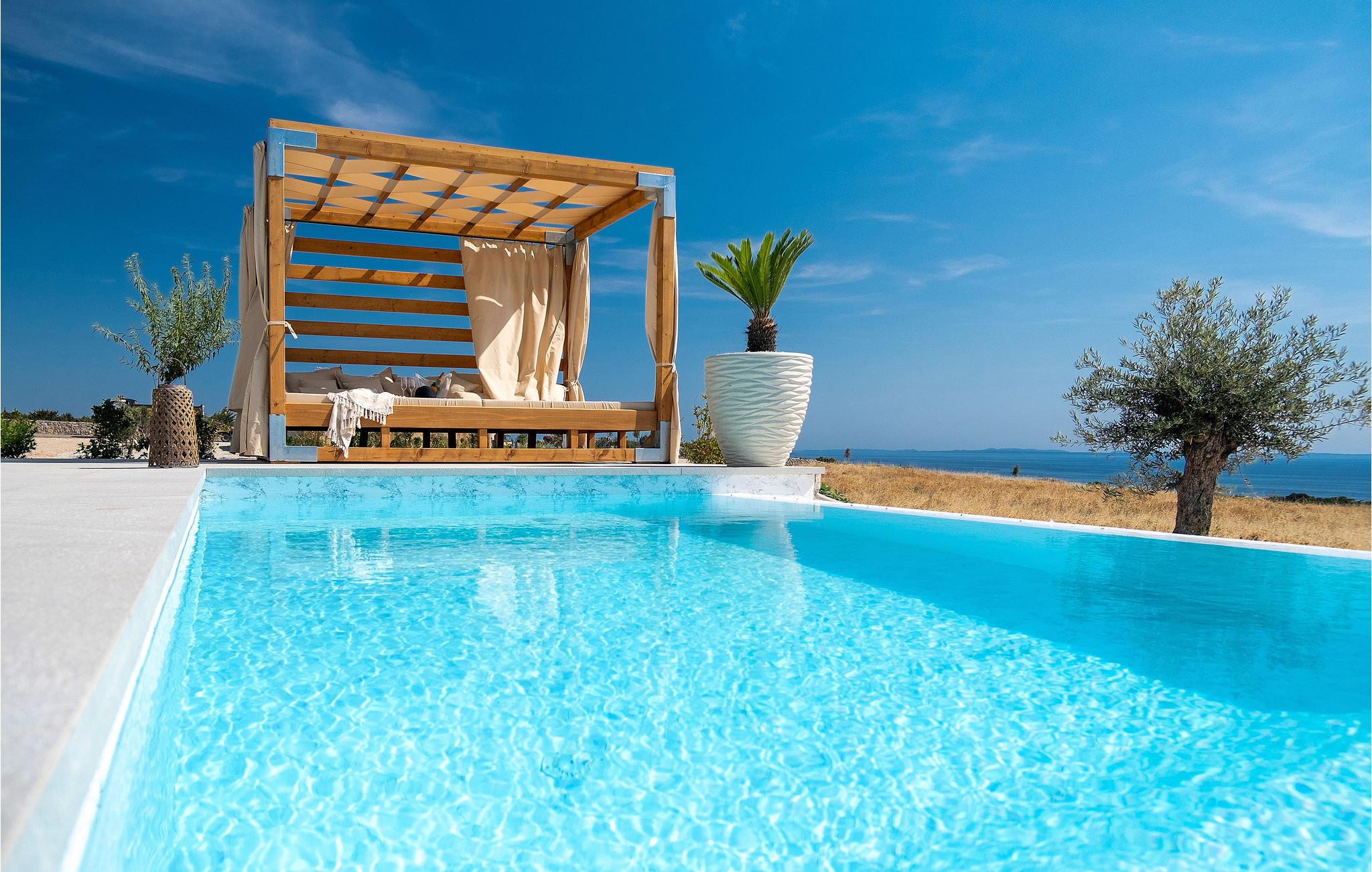 Dette store hus har en fantastisk beliggenhed på øen Pag. Indenfor kan I se frem til en velindrettet og indbydende bolig med gennemtænkte løsninger og materialer af høj kvalitet. Tilbered jeres ferieretter i det attraktive køkken, mens I kaster et blik på omgivelserne eller slapper af på sofaen med en god bog og den smukke udsigt. Hvis I får brug for at køle ned, er der kun få skridt til poolen. Aktivitetsrummet giver jer mulighed for at snuppe et spil billard eller læne jer tilbage med en drink i sofaen.