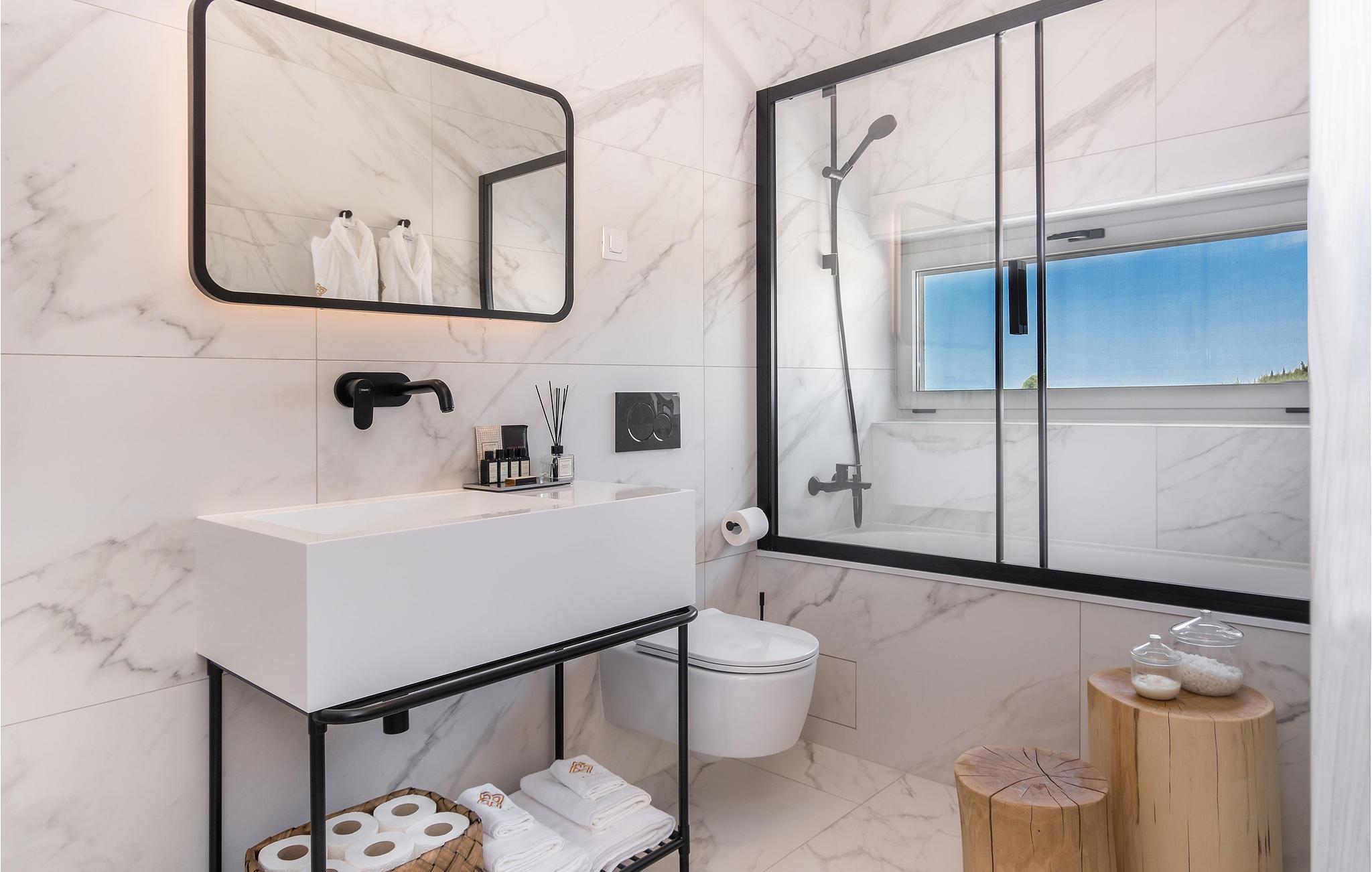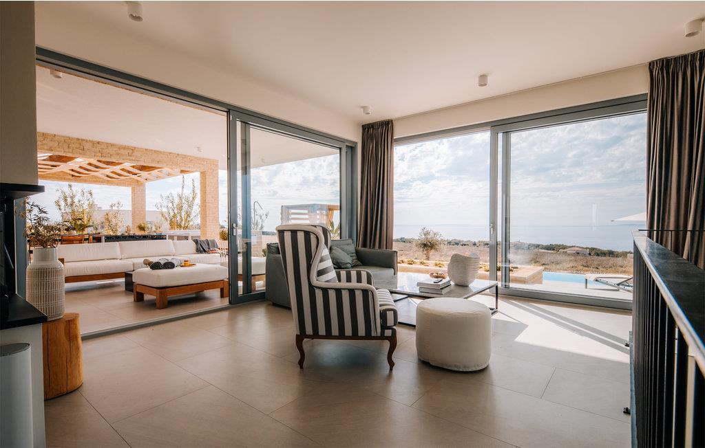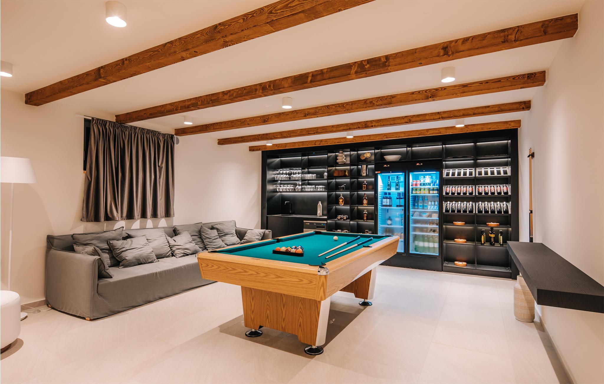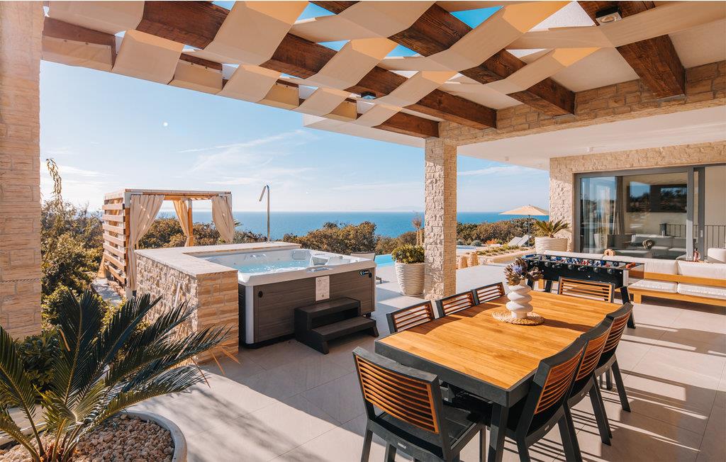Dette store hus ligger i en fantastisk beliggenhed på øen Pag. Indenfor kan I forvente møblerede værelser af høj kvalitet, der gør et meget elegantt indtryk. Overalt imponerer huset med gennemtænkte løsninger og materialer af høj kvalitet. Tilbered jeres lækkerier i det tiltalende køkken, mens I stirrer på omgivelserne eller slap af på sofaen med jeres ferielæsning, hvorfra I kan nyde en smuk udsigt til omgivelserne og kun få skridt adskiller jer fra en dukkert i den udendørs pool. Aktivitetsrummet lægger op til et spil billard, eller hvis I foretrækker at se det, kan I krølle jer sammen på sofaen med en afkølet drink efter eget valg.