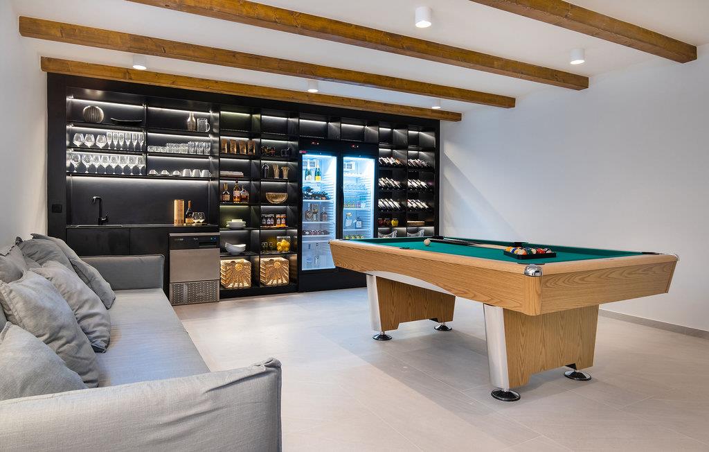 Dette store hus ligger i en fantastisk beliggenhed på øen Pag. Indenfor kan I forvente møblerede værelser af høj kvalitet, der gør et meget elegantt indtryk. Overalt imponerer huset med gennemtænkte løsninger og materialer af høj kvalitet. Tilbered jeres lækkerier i det tiltalende køkken, mens I stirrer på omgivelserne eller slap af på sofaen med jeres ferielæsning, hvorfra I kan nyde en smuk udsigt til omgivelserne og kun få skridt adskiller jer fra en dukkert i den udendørs pool. Aktivitetsrummet lægger op til et spil billard, eller hvis I foretrækker at se det, kan I krølle jer sammen på sofaen med en afkølet drink efter eget valg.