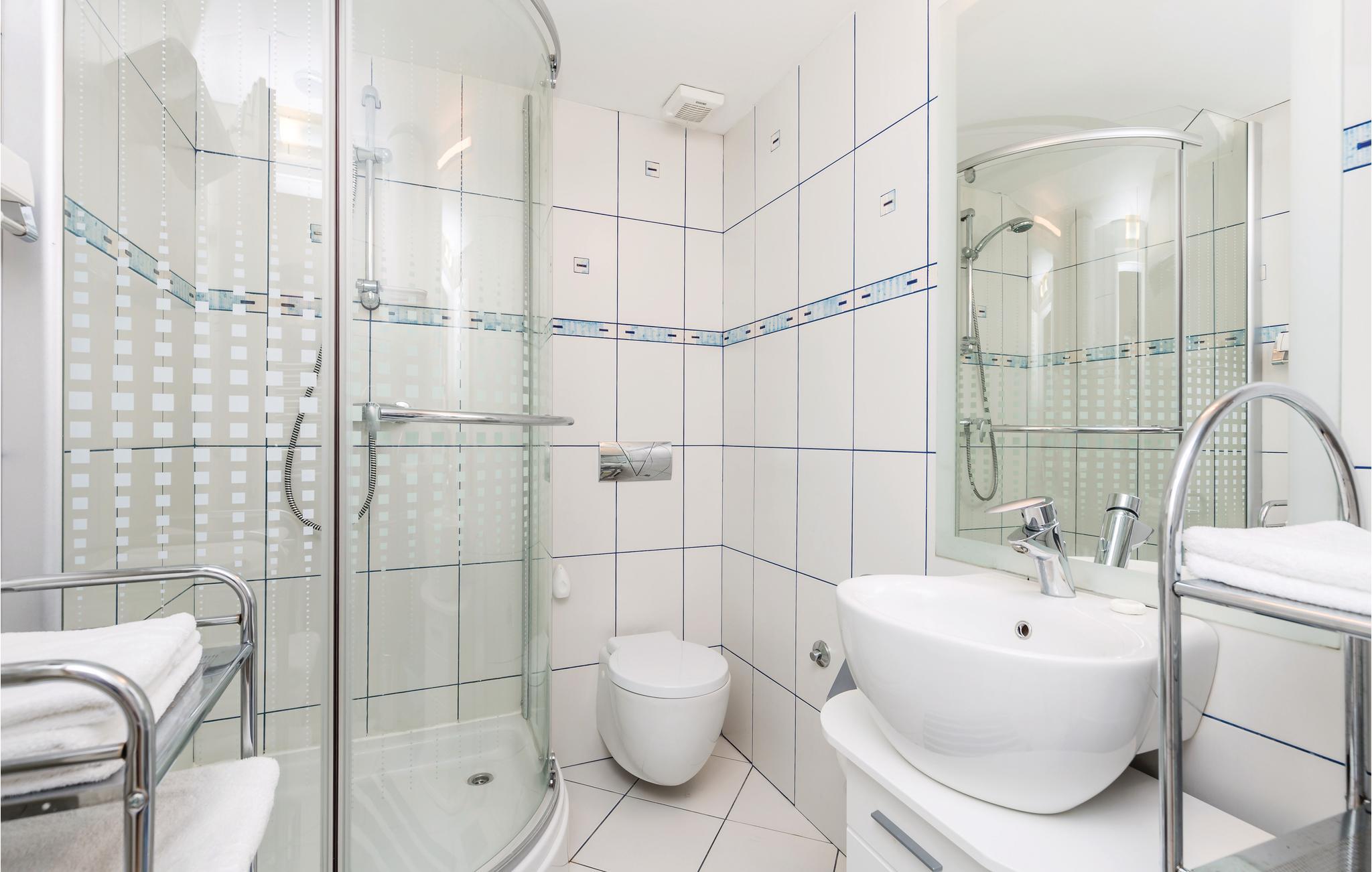 Badeværelse (nr. 1) - WC. Varmt og koldt vand. Bruser