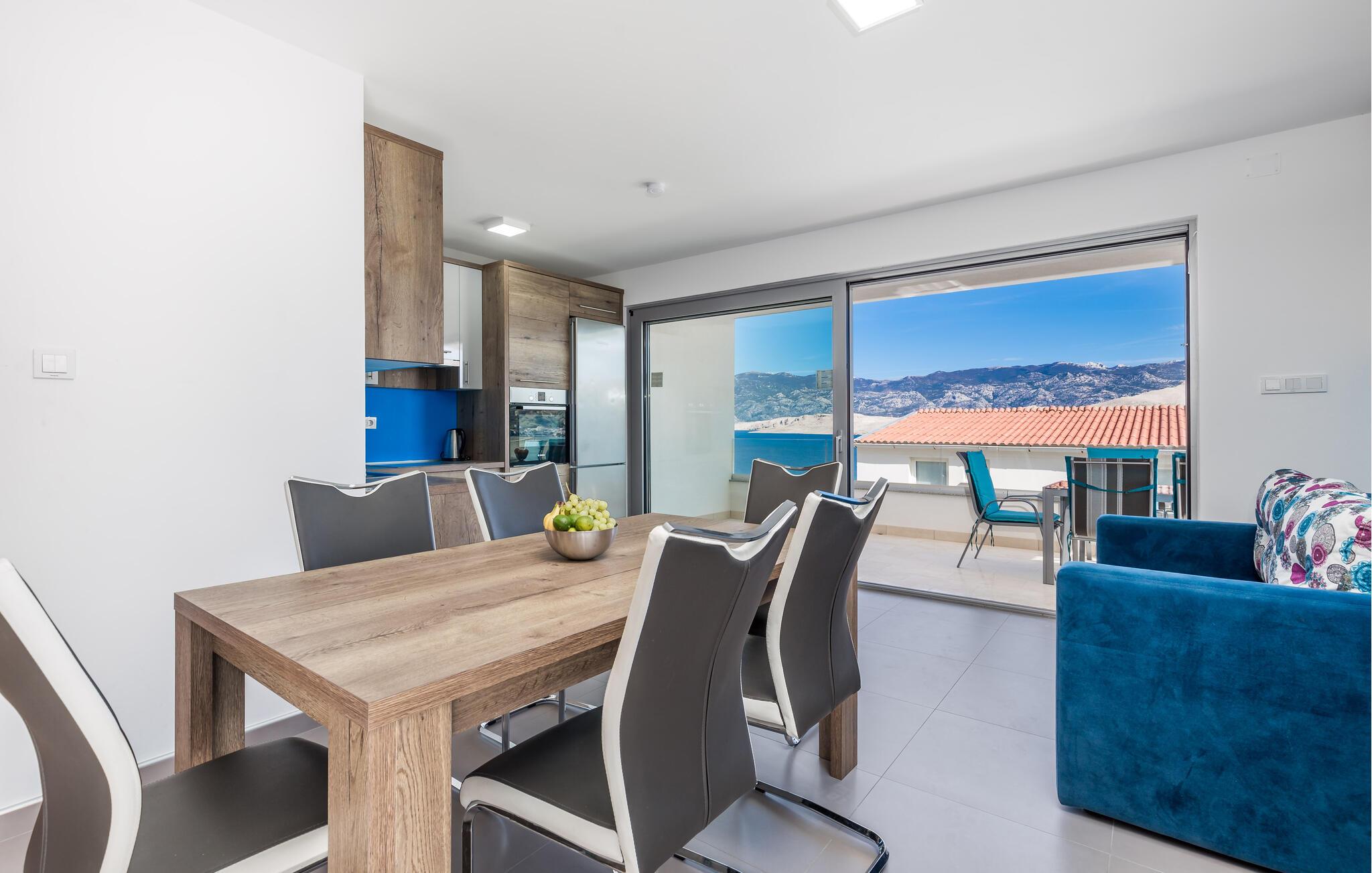 CKP763 og CKP764 er enkelt og funktionelt indrettede ferielejligheder som ligger tæt på strandene. Begge lejligheder har rummelig terrasse med skøn udsigt til Pag bugten. Eftersom den nærmeste kiesstrand kun ligger 150 m fra lejlighederne er der nærliggende at starte dagen med en dukkert i det krystalklare vand. Byen Pag er kendt for sin saltudvinding og der findes endda et saltmuseum i byen. Men der er også en velsmagende ost der bliver fremstillet i byen, ligesom lokal vin og lam er værd at udforske. Øen Pag er præget af sin tørre og golde natur, men I vil nyde at gå på opdagelse i de uforstyrrede bugter hvor I kan bade i krystalklart vand.