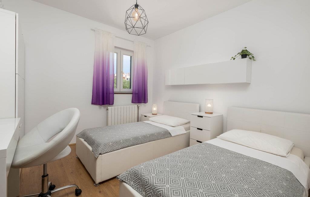 Hold jeres næste ferie i denne moderne og rummelige ferielejlighed med smuk panoramaudsigt over havet og øen. Lejligheden har en fremragende beliggenhed på første sal i Povljana på eventyrøen Pag. Den nærliggende strand er en sandstrand og ideel til familier med børn. På den smukke ejendom er der børnefaciliteter og en grill til fælles brug. Vi anbefaler udflugter til den årtusinde gamle olivenlunde Lun, byen Novalja, det populære saltmuseum og museet for de berømte Pag-blonder. Besøg også de nærliggende øer Rab, Lošinj, Silba og Olib samt den historiske by Zadar med uforglemmelige solnedgang og moderne arkitektur. Mærk naturen komme helt tæt på i nationalparkerne Kornati, Krka, Plitvice Søer, Paklenica og Nord Velebit.