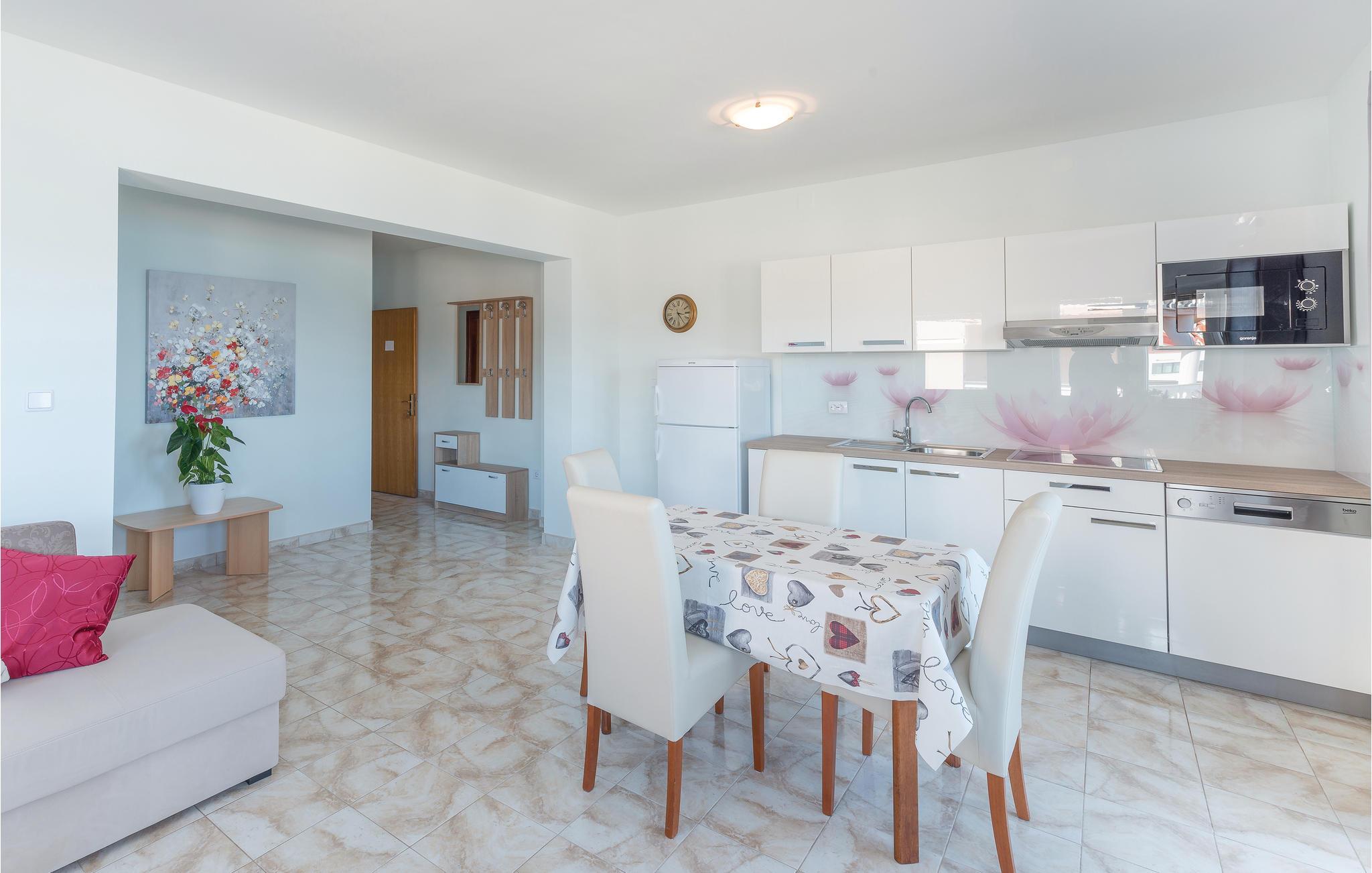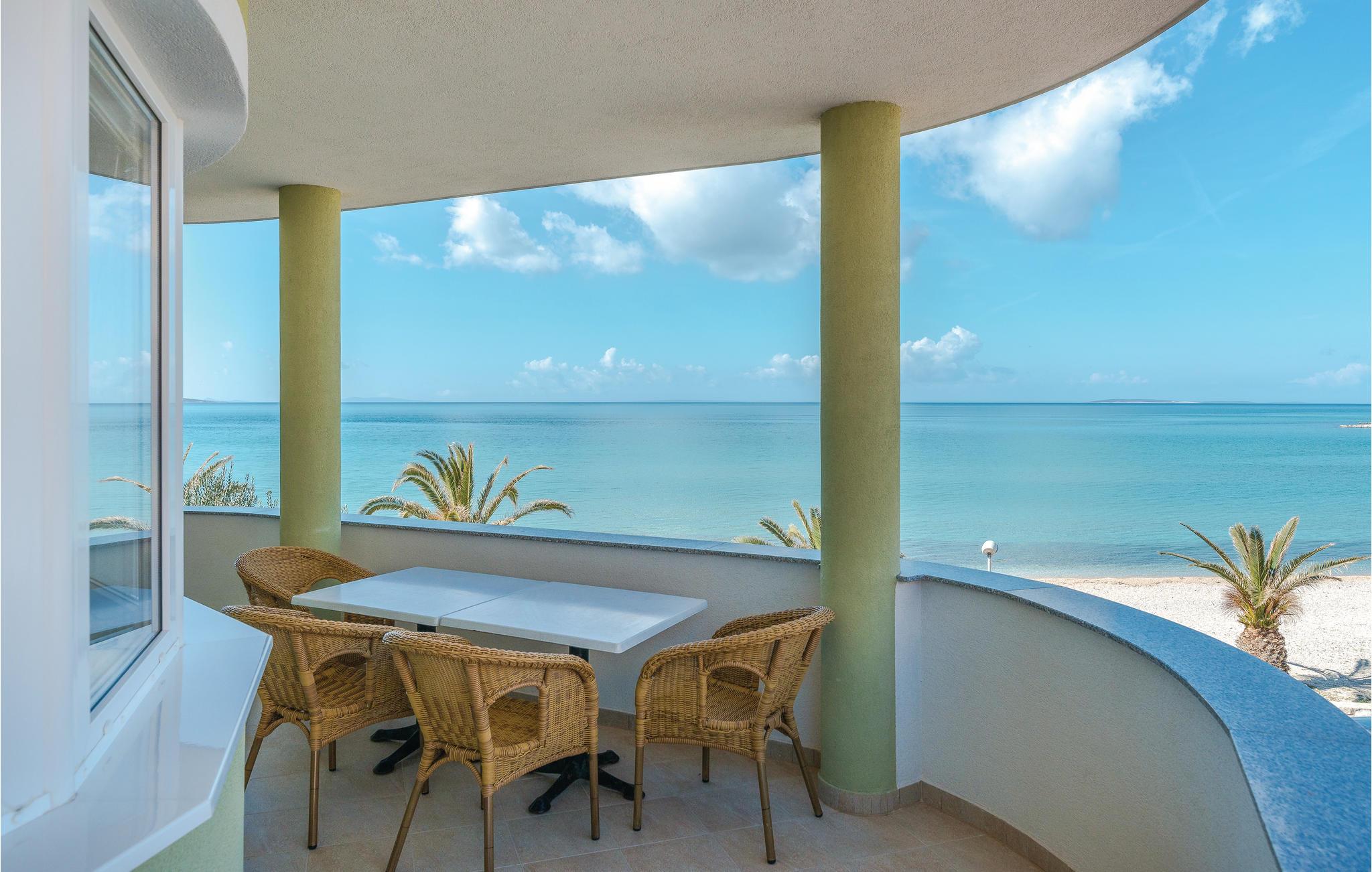 Direkte ved den dejlige grusstrand ligger disse ferieljligheder med fantastisk udsigt fra altanerne. Skråvægge i CKP672 på 140 cm og i CKP673 på 120 cm. Lejlighederne CKP801, 802 og 804 ligger på 1. sal. Lejlighederne har fælles adgang til whirlpool og swimmingpool. Ved siden af boligen er der en restaurant og café med billard og bordfodbold. Pag byder på smukke strande og hemmelige bugter, øen er også kendt for god gastronomi: osten Gligora og lammekødet fra Prag har vundet internationale priser. Besøg også byen Zadar og oplev den smukkeste solnedgang i hele verden, ifølge Alfred Hitchcock.