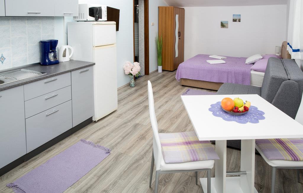 Disse enkelt og praktisk indrettede ferielejligheder ligger på første sal i en privat ejendom, på solskinsøen Pag, i Dalmatienregionen. Glæd jer til at slappe af på terrassen, med delvis udsigt over havet, i haven er der en fælles grill der kan benyttes af alle i huset. Her kan I nyde øens gode mad og drikke den lokale vin og bare hygge jer sammen. Øens vidunderlige strande, den fascinerende kulturarv og de fremragende underholdningsmuligheder er nogle grundene til at besøge denne fantastiske ferieø, hvor der også venter specialiteter som ost, lammesteg og en lang tradition for at lave flortynde kniplinger af høj kvalitet.